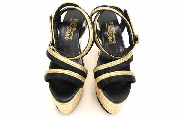 フェラガモオーナメントミニチュアサンダルブラックゴールド中古置物インテリア小物SalvatoreFerragamo
