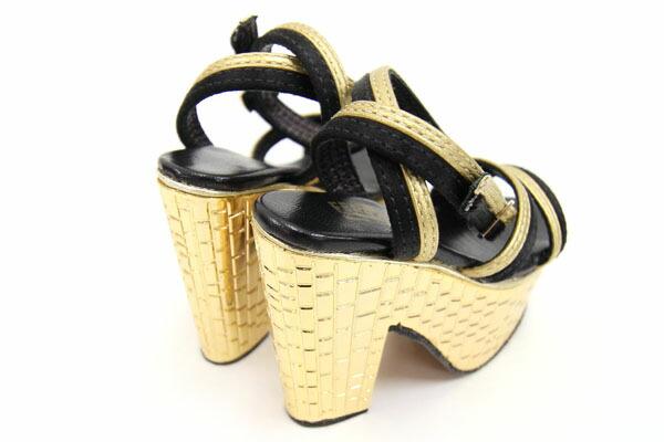 Salvatore Ferragamo Ornament Miniature Sandals Black Gold Used Figurine Interior Decoration Accessories