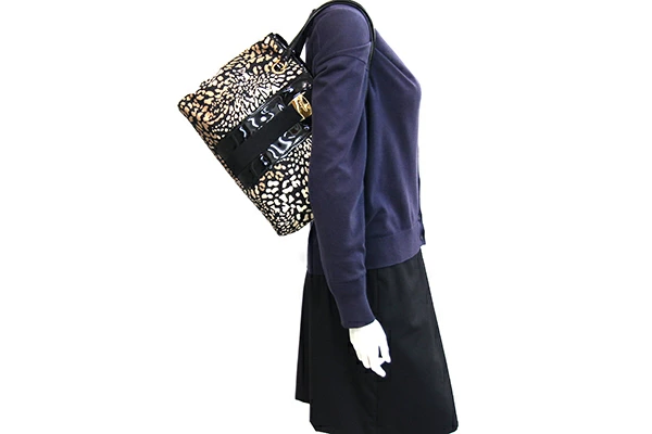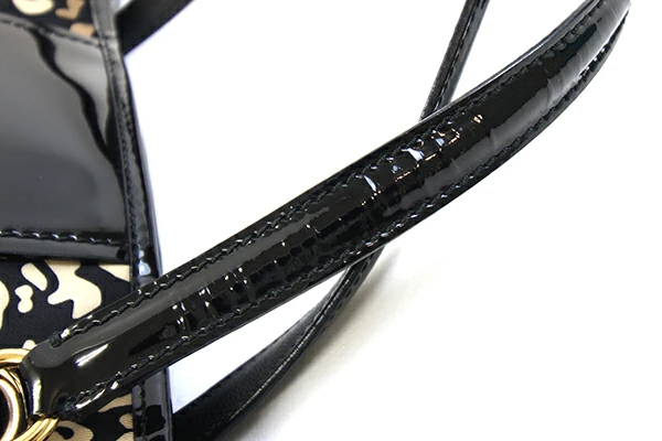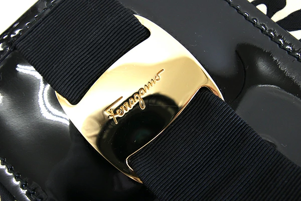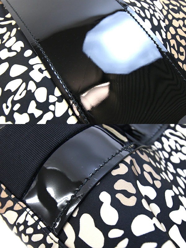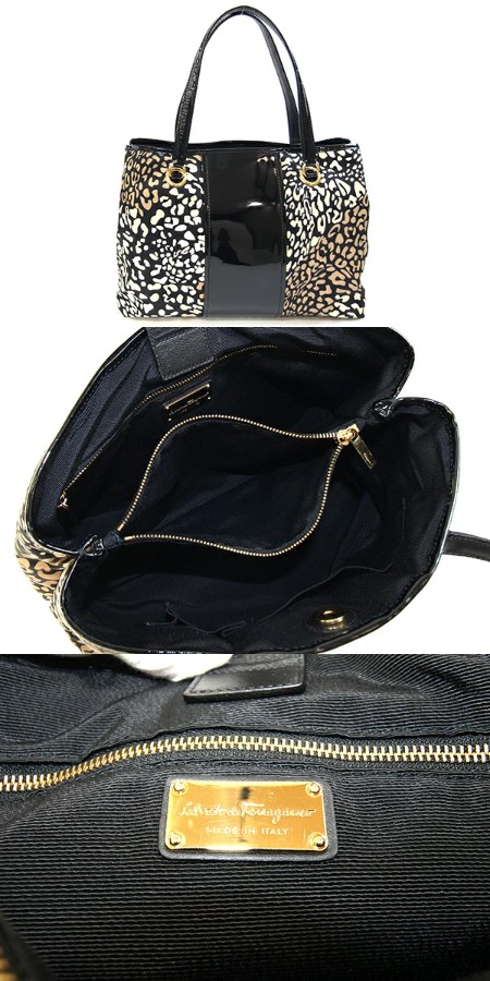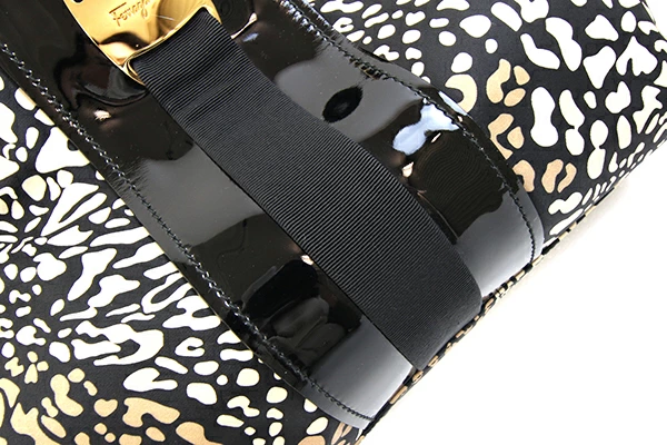 Ferragamo Vara Tote Bag FJ21 E166 Beige/Black Nylon/Patent Leather Used Animal Leopard Print Shoulder Bag Logo Women's Salvatore Ferragamo