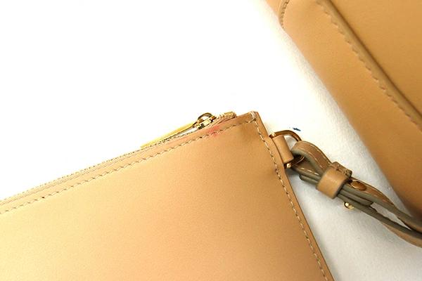 | 状態 | 外側:所々スレ・薄汚れ・小さい黒汚れあり。ポーチの入口に赤い汚れあり。 内側:キズ・スレ・薄汚れ・所々赤い汚れあり。 金具:小キズ・スレあり。 |