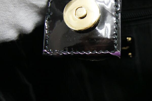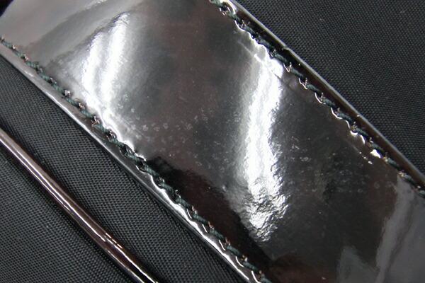 状態:外側:ナイロン地薄スレ汚れあり。パテントレザー部分に小キズ、スレあり。内側:薄スレあり。開閉マグネット部分コーティング剥がれあり。金具:小キズ、スレあり。