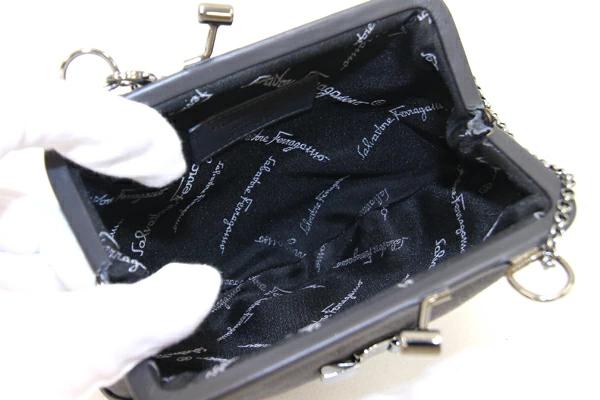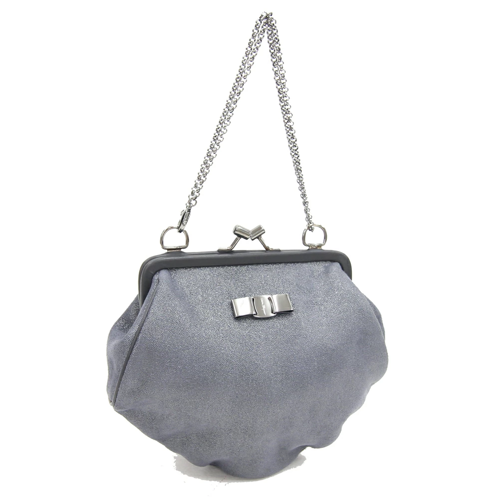 Pre-owned Salvatore Ferragamo Vara handbag, 224617, gray leather, clasp closure, mini bag, small, for women.