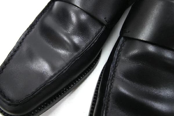状態外側:所々微細なスレあり。甲(アッパー)革に横シワあり。アウトソールに張替えあり。