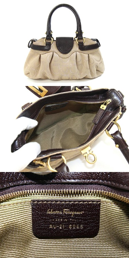 | 状態 | 外側:レザー部分に所々薄キズあり。ハンドルのフチにコーティング割れあり。 内側:薄スレ、生地に変色あり。 金具:小キズ、薄スレ、クスミあり。 |