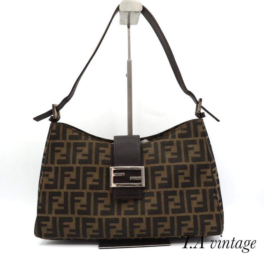 品名 フェンディ ズッカ柄 キャンバス レザー ハンドバッグ ブラウン