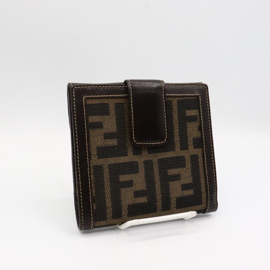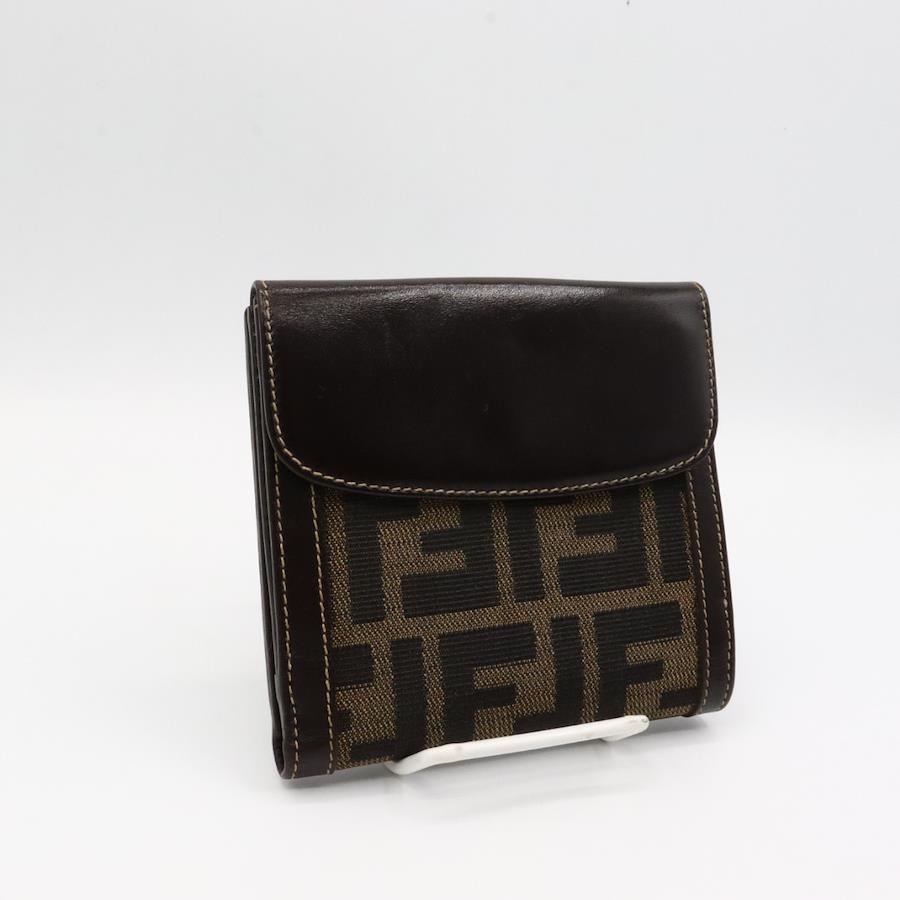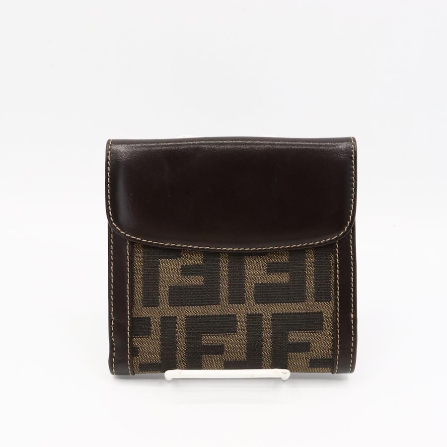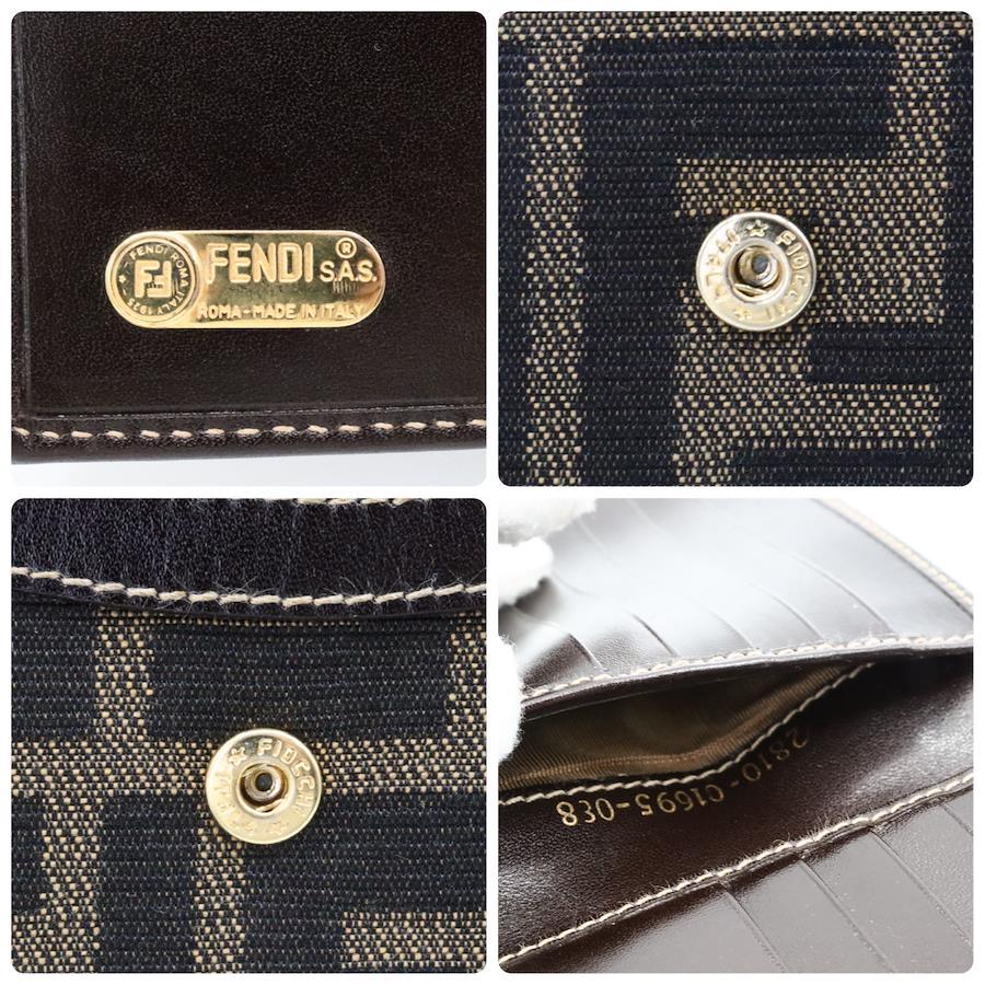 【商品説明】品名 フェンディ ズッカ柄 キャンバス レザー Wホック 折り財布 ブラウンシリアルナンバーサイズ 約縦11センチ 横11.5センチ 厚み2センチ仕様 小銭入れ1 札入れ1 ポケット2 カード入れ10付属品 なし【商品状態】剥がれ、ベタつきありません。ボタンしっかりとまります。若干のスレ、ヨレがあります。届いたらすぐに気持ちよくお使いいただけるコンディションです。この機会に是非お買い求めください