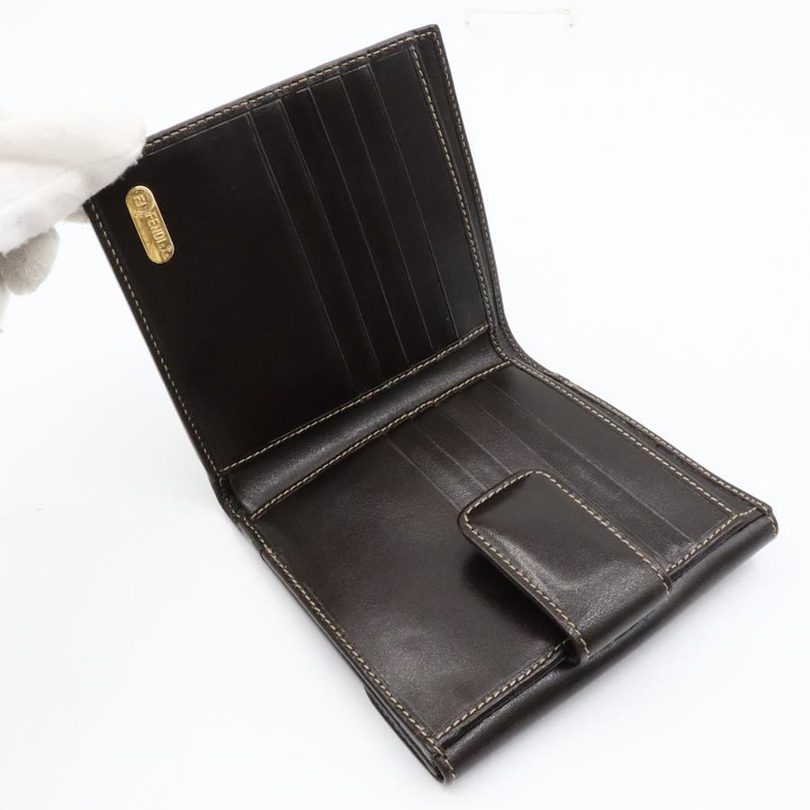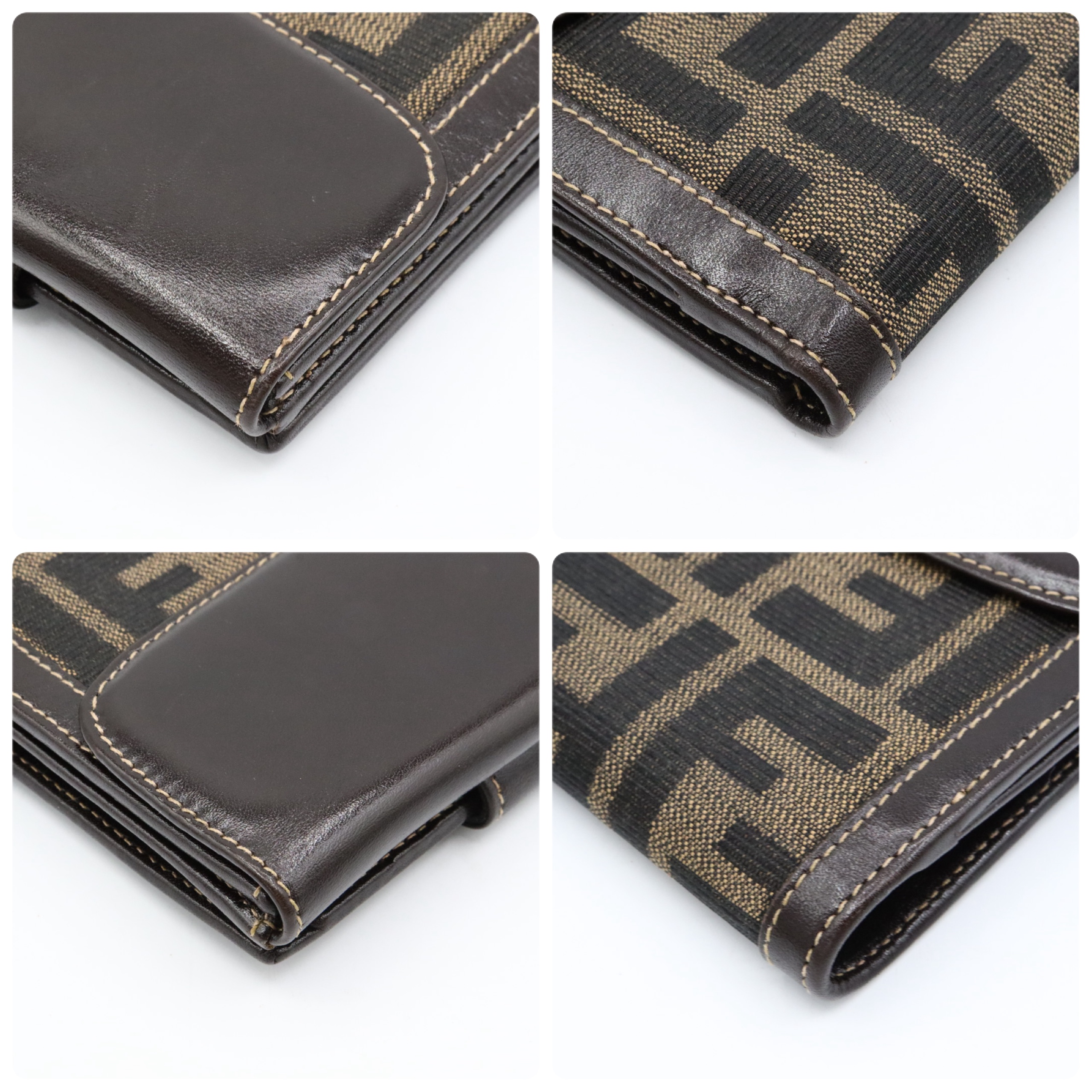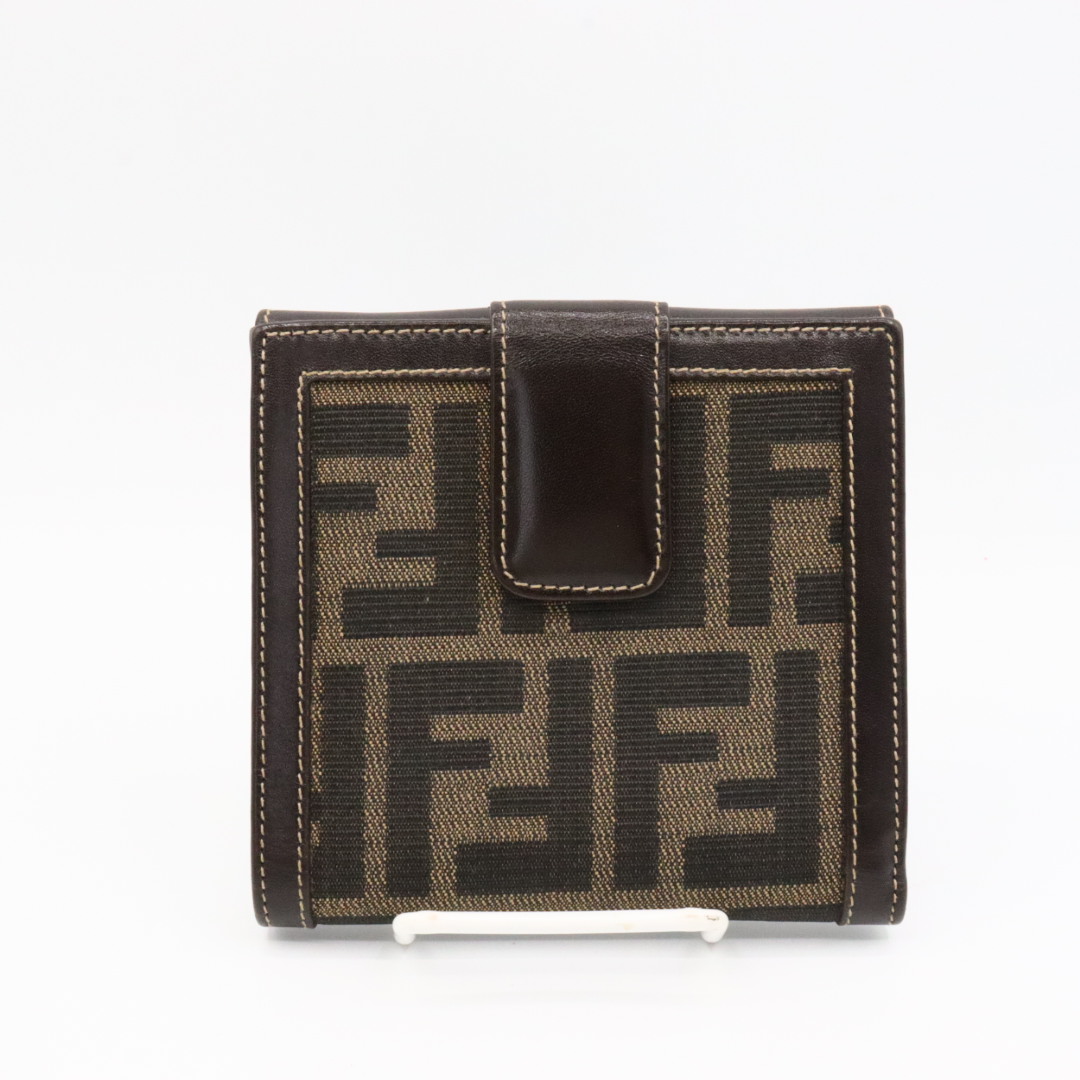 【商品説明】品名 フェンディ ズッカ柄 キャンバス レザー Wホック 折り財布 ブラウンシリアルナンバーサイズ 約縦11センチ 横11.5センチ 厚み2センチ仕様 小銭入れ1 札入れ1 ポケット2 カード入れ10付属品 なし【商品状態】剥がれ、ベタつきありません。ボタンしっかりとまります。若干のスレ、ヨレがあります。届いたらすぐに気持ちよくお使いいただけるコンディションです。この機会に是非お買い求めください