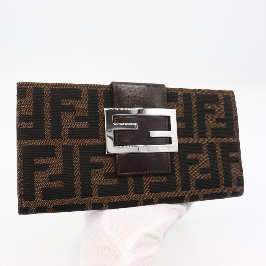 【商品説明】品名 フェンディ ズッカ柄 キャンバス 長財布 ブラウン シルバー金具シリアルナンバーサイズ 約縦9センチ 横18センチ 厚み2センチ仕様 小銭入れ1 札入れ 1 ポケット3 カード入れ6付属品 箱【商品状態】剥がれ、ベタつきありません。ボタンしっかりとまります。若干のスレ、ヨレがあります。届いたらすぐに気持ちよくお使いいただけるコンディションです。この機会に是非お買い求めください