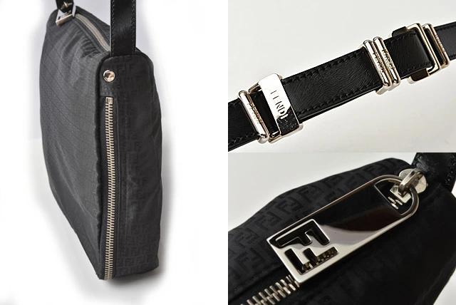フェンディより、ショルダーバッグです。ミニズッキーノ柄のショルダーバッグです。ロゴ入れのメタルプレートがアクセントに。ナイロン素材で、軽量のため、普段使いから、旅行のサブバッグにもオススメです。【 用途 】ショルダーバッグ