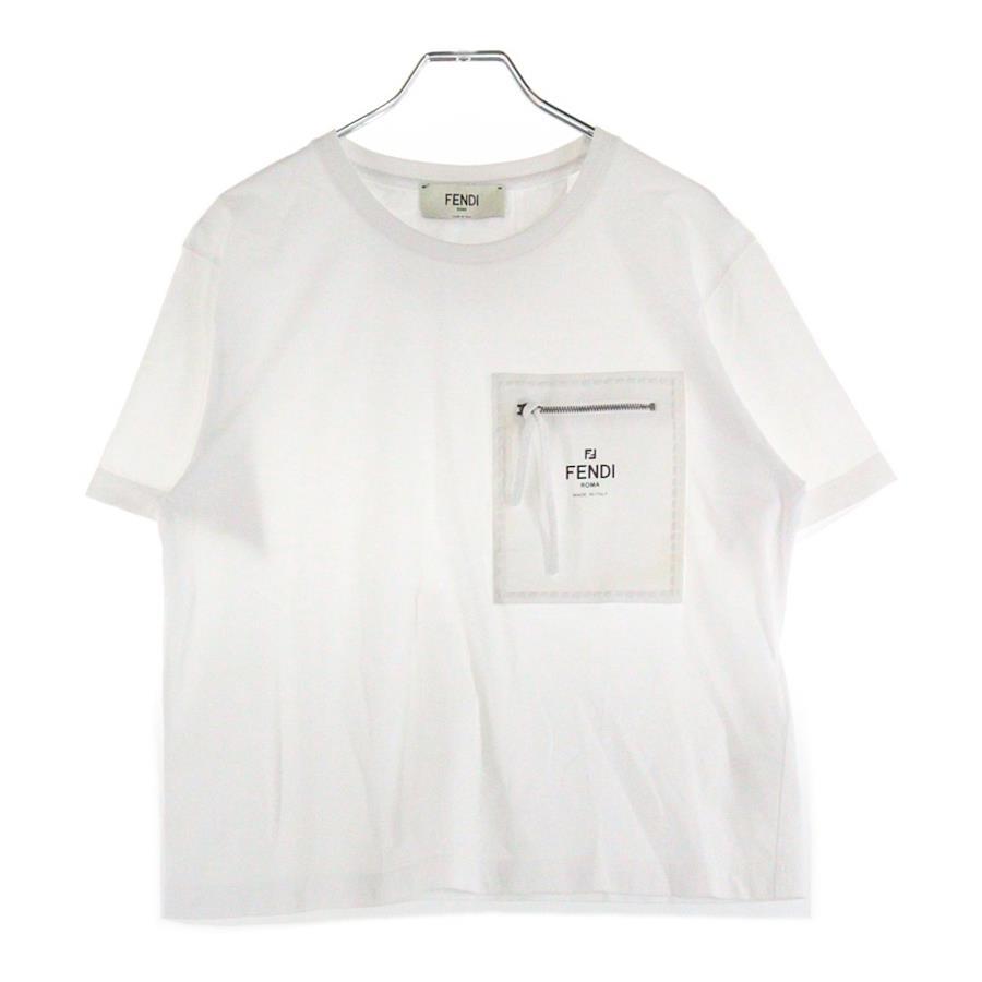 [モデル]ジップポケット ロゴ ショートスリーブカットソー 半袖Tシャツ ホワイト