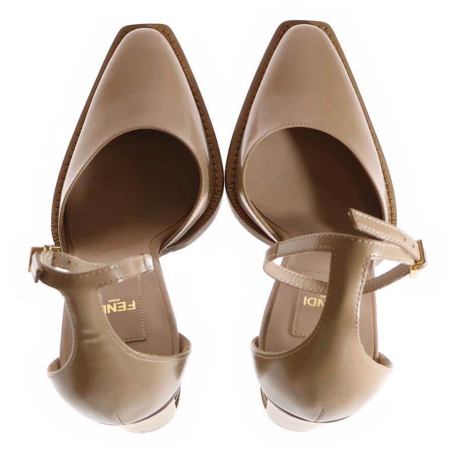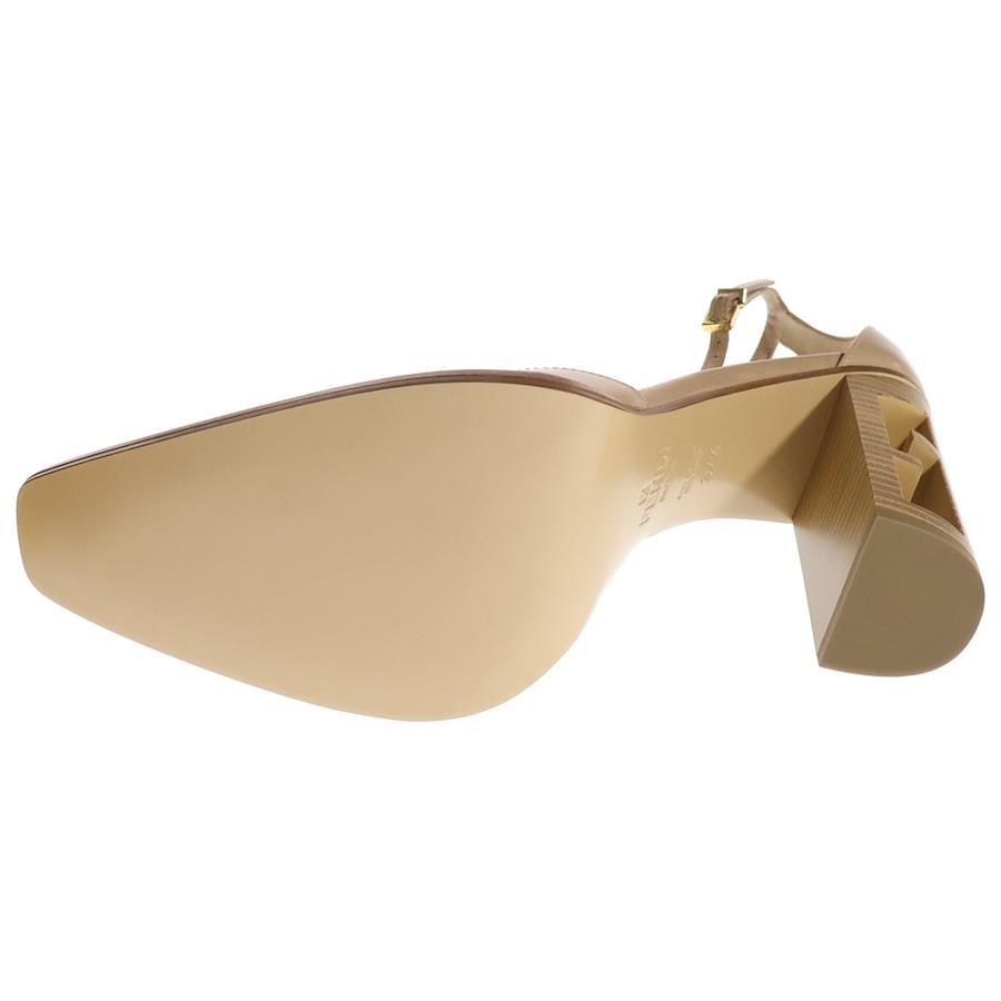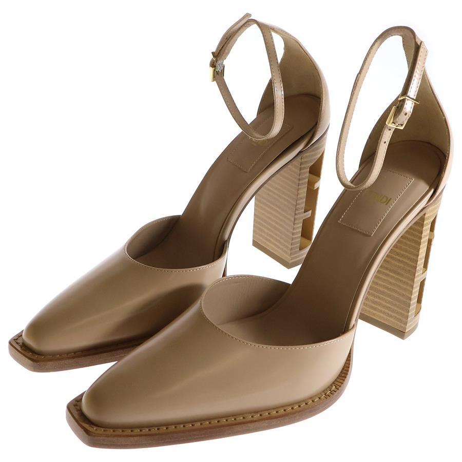 [モデル]スクエアトゥ FFロゴ ヒールストラップサンダル レディース ベージュ