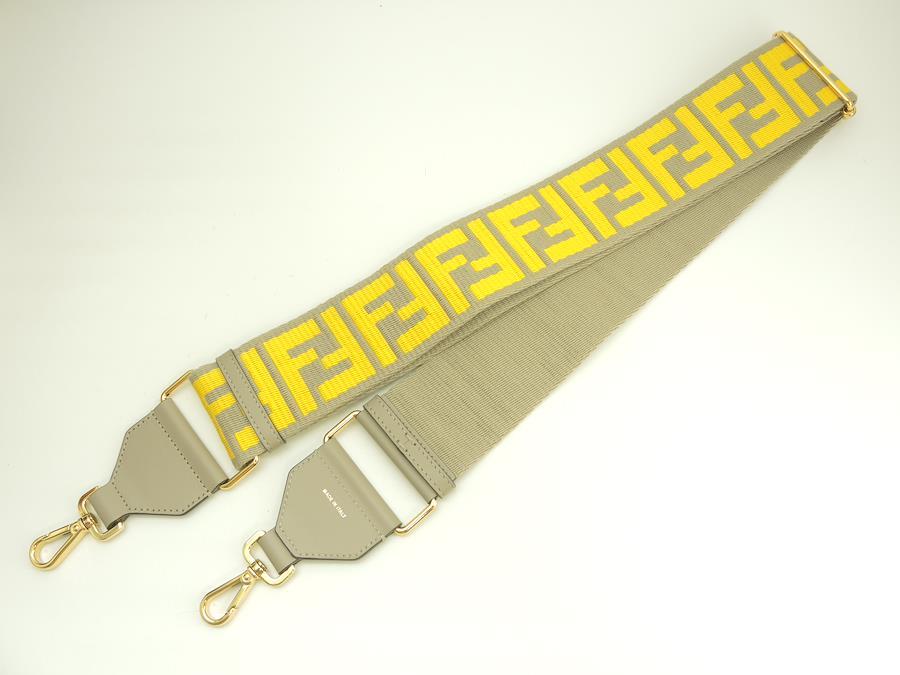 #Fendi #StrapYou #Strap #You#ShoulderStrap #Cotton #Leather #Gray #Yellow #90%new #authentic #FF #motif #Long #Strap #Gold #secondhand #wholeSale #haibanya #aisai-jp #転売可