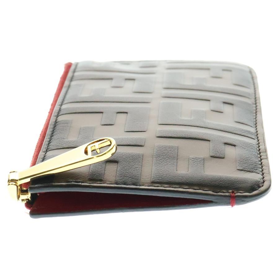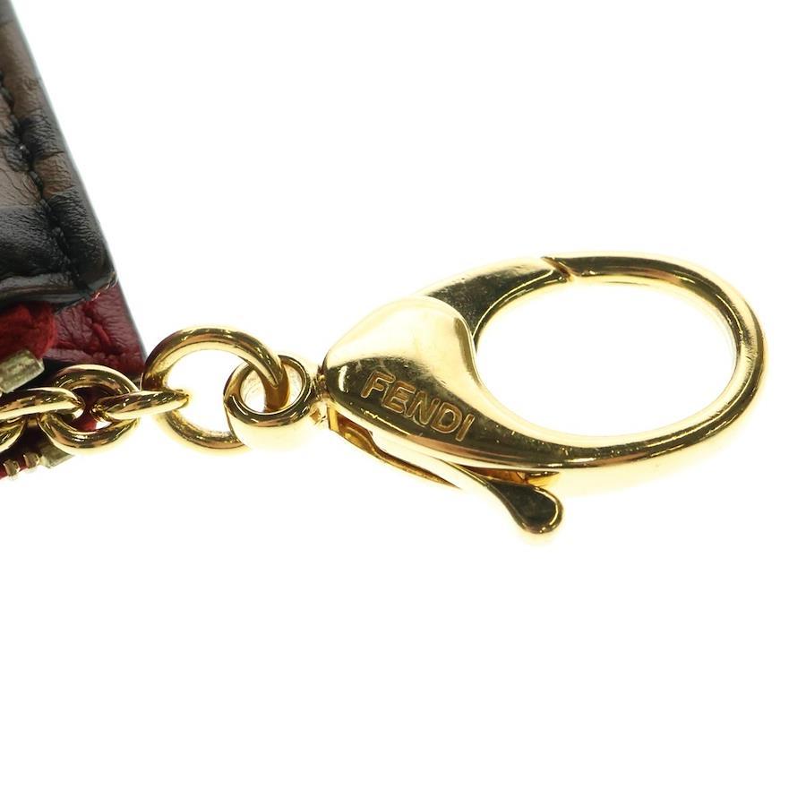 [モデル]ズッカ フラグメントケース カードケース ポーチ 小物入れ バッグチャーム ブラウン×レッド ゴールド金具 レザー 8AP161