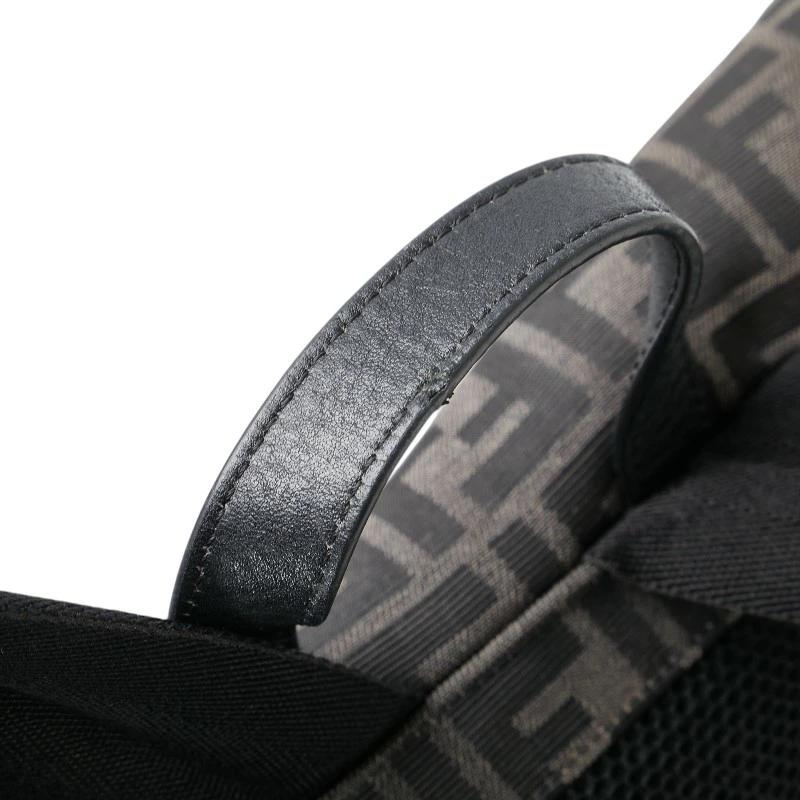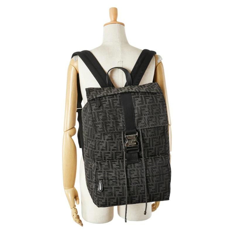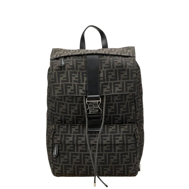 Pre-owned Fendi Zucca Backpack in Black and Brown Canvas and Leather for Women.