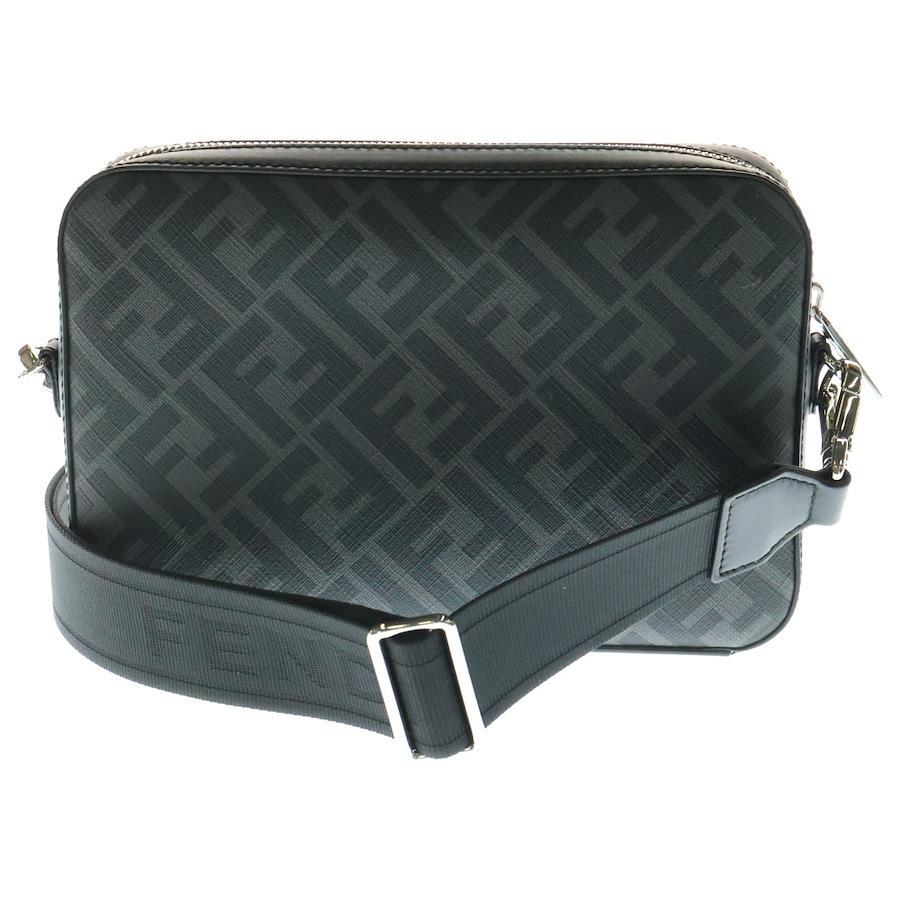 [モデル]ダイアゴナル カメラケース ショルダーバッグ ブラック×イエロー シルバー金具 レザー×PVC 7M0286