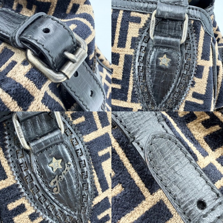 Fendi handbag for women, Zucca Etnico, FENDI 8BN157, velour leather, brown, black, gunmetal hardware [Pre-owned]