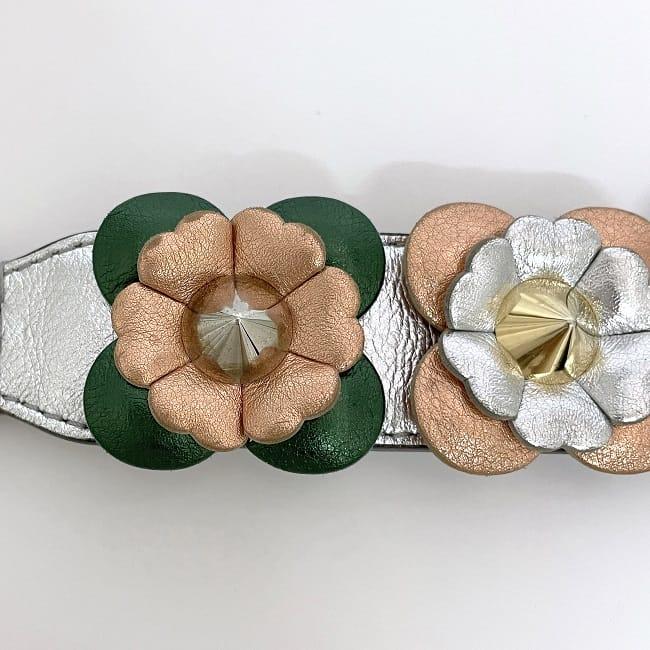 フェンディ ハンドル ストラップユー ec-23553 シルバー マルチカラー 美品 レザー 中古 FENDI 花 フラワー モチーフ ショート ショルダー ストラップ 銀色 シルバー金具 花モチーフ ショートハンドル レディース ハンドバッグ ブランド 本物 鑑定済み