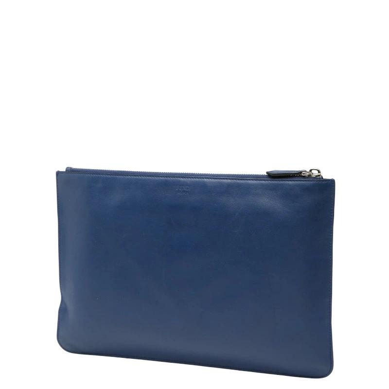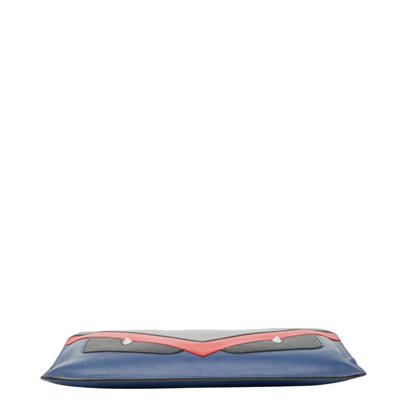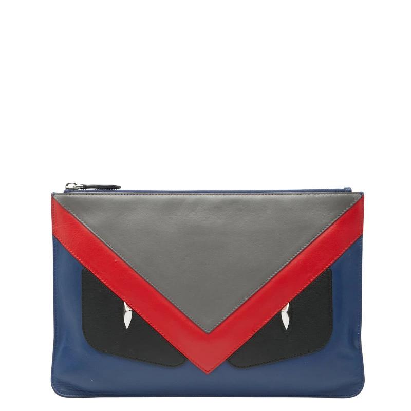 Pre-owned Fendi Bag Bugs Monster Clutch Bag 7N0078 in Blue, Gray, and Red Leather. Women's.