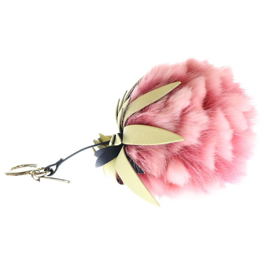 [モデル]フルーツチャーム ファー バッグチャーム キーホルダー キーリング ピンク×グリーン シルバー金具