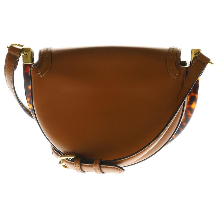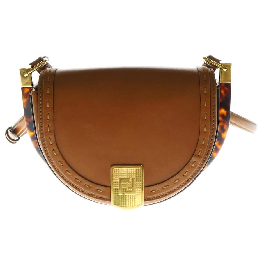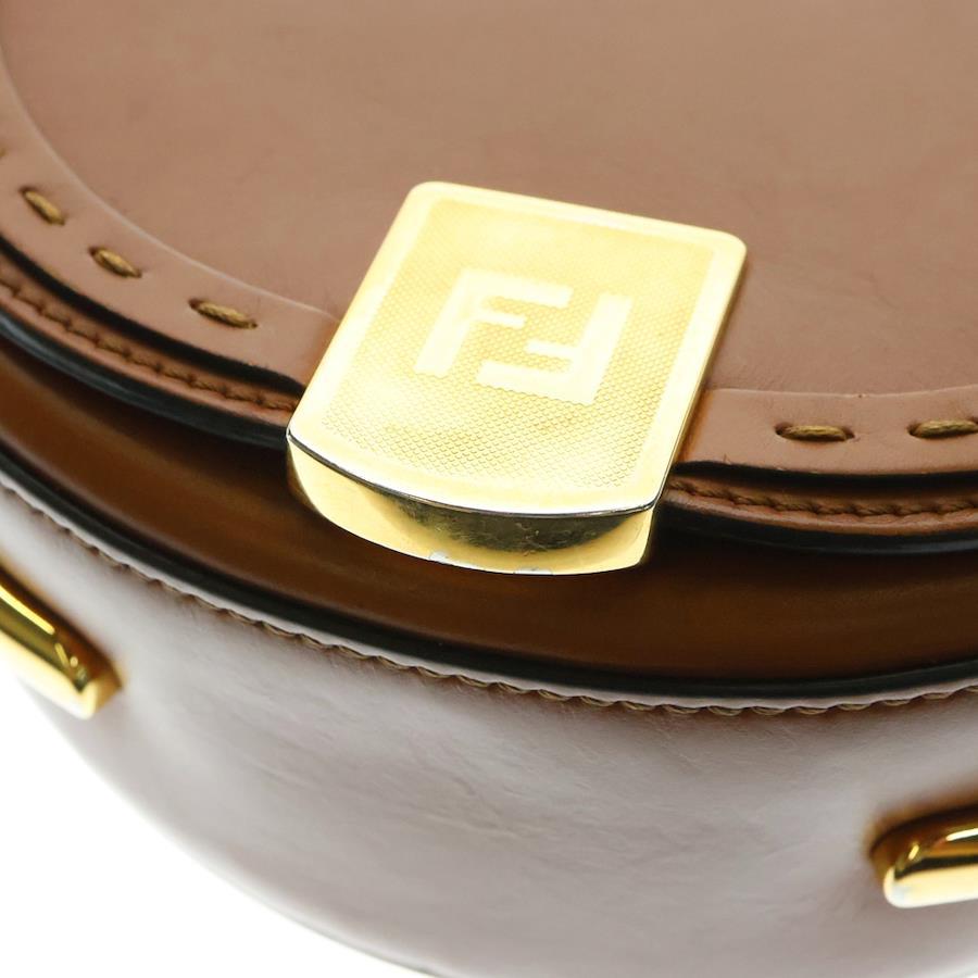 [モデル]ムーンライト FFロゴプレート レザー ショルダーバッグ ゴールド金具 ブラウン 8BT346