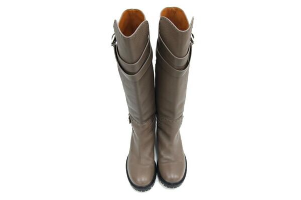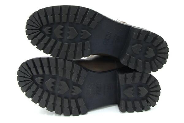 フェンディレディースシューズロングブーツブラウンレザーサイズ37中古ステッチ靴レディース女性FENDI
