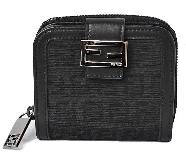 FENDI ズッキーノ ファスナー付 二つ折り財布 ブラック 8M0070