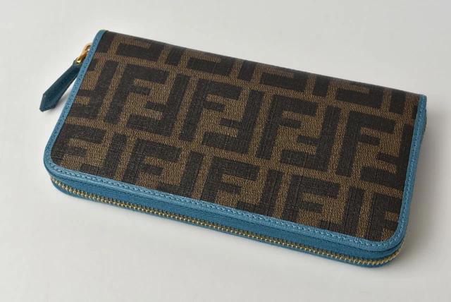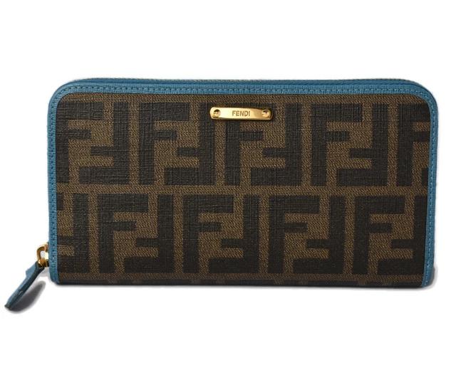 FENDI 長財布/ラウンドファスナー PVC ズッカ柄 FFロゴ/ターコイズ