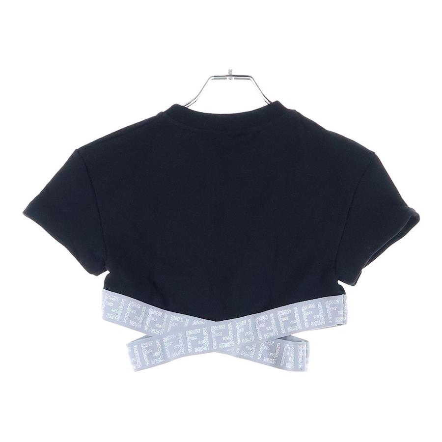 [モデル]23AW FFロゴ ストラップ クロップド短丈クルーネック半袖Tシャツカットソー レディース ブラック JFI256 5V0