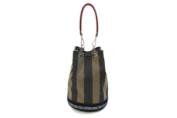 フェンディ2WAYバッグモントレゾール7VA450カーキブラックレッドジャガードキャンバスレザースウェード中古ショルダーバッグ斜め掛けペカン柄巾着レディースFENDI