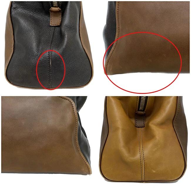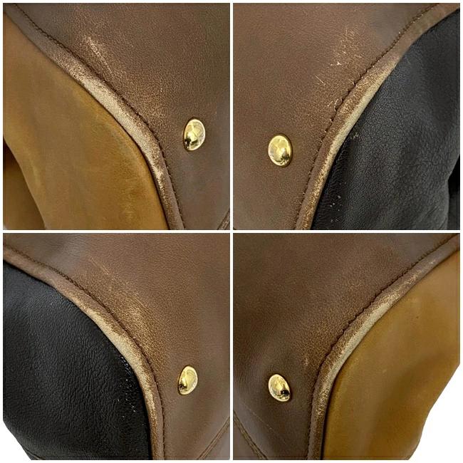 商品名:カメレオンブランド名:フェンディ/FENDI商品ランク:Bランク素材:レザーサイズ:(約)w:38cm(下部計測)×h:30cm×d:16cmショルダー紐:92.5cm~125cm型番・品番:8BL110-GVRカラー:ブラウンダークブラウンキャメル仕様:オープンポケット×2ファスナーポケット×1付属品:なし詳細説明:底部の角やハンドルにスレ、表面の所々に傷、金具部分に小傷、ファスナー金具の色落ち、内側上部に汚れ、ショルダー紐フチにひび割れなど使用感がありますがまだまだお使いいただけるお品物です。コメント:落ち着いた大人カラーの配色が魅力的な人気のカメレオン。広めのマチで大容量なのに荷物の整理がしやすく使い勝手抜群のお品物です。商品番号:ec-13500no.2610894220304