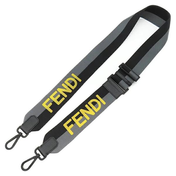 ▲クリックで拡大されますフェンディ FENDI ショルダーストラップ ストラップユー ストラップユー キャンバス レザー ブラック×グレー×イエロー バイカラー ロゴ ブラック金具 8AV397 レディース 【保存袋】定番 人気 美品 【中古】