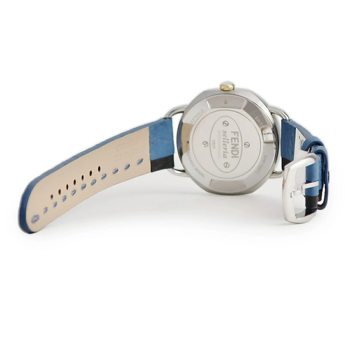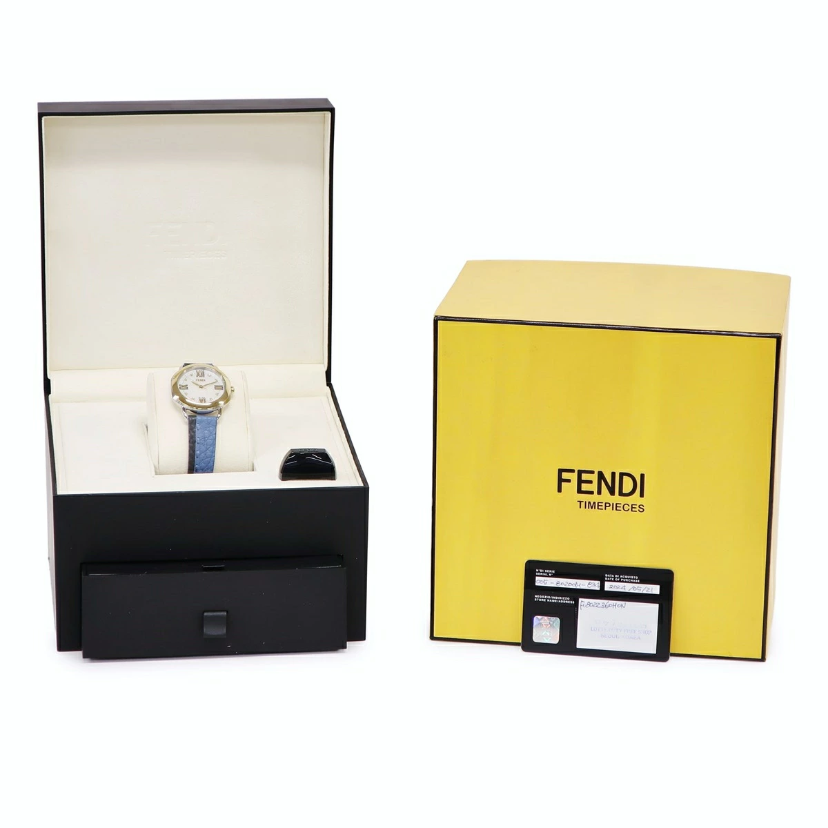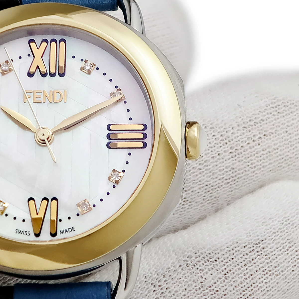 Pre-owned Fendi Selleria 36mm F8021345H0D1, like new, genuine diamond, shell, gold, white, quartz movement, for men and women.