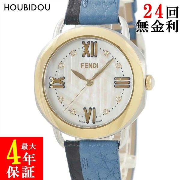 フェンディ FENDI セレリア 36MM F8021345H0D1 新品同様 純正ダイヤ シェル ゴールド 白 メンズ レディース 腕時計クオーツ ホワイト 【中古】【店頭受取不可】