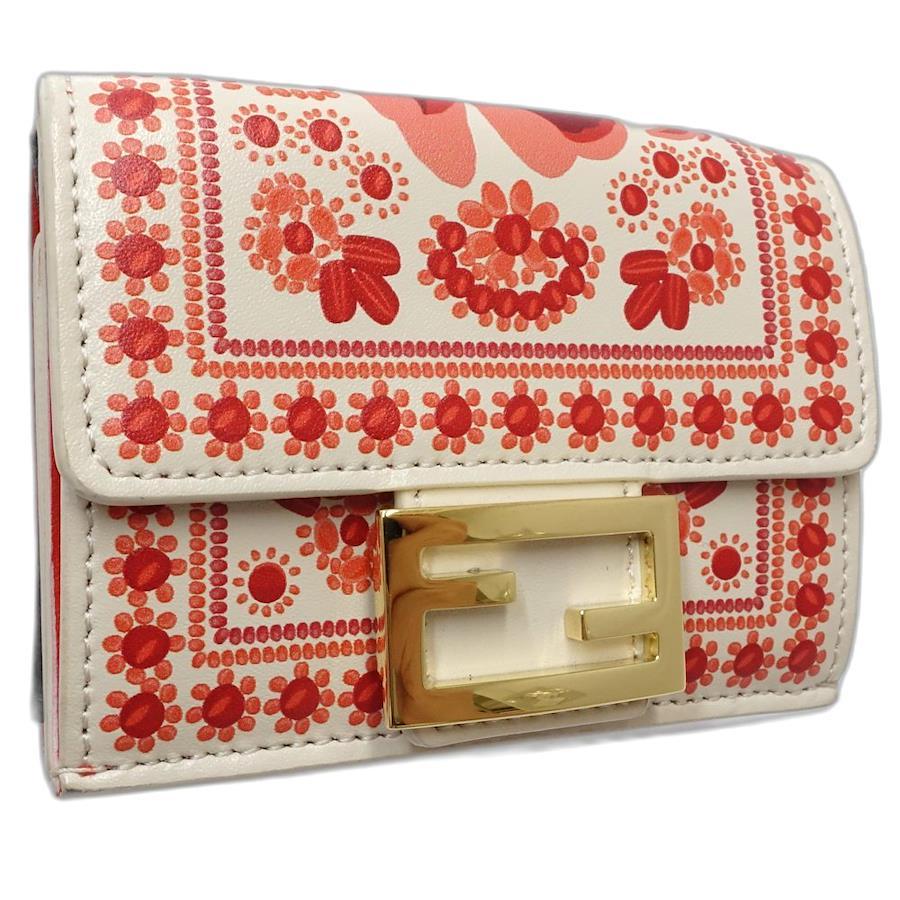 Fendi Baguette Micro Compact Wallet 8M0395AV1HF1SXV Tri-fold Leather Ivory Red / 181558 [Pre-owned]