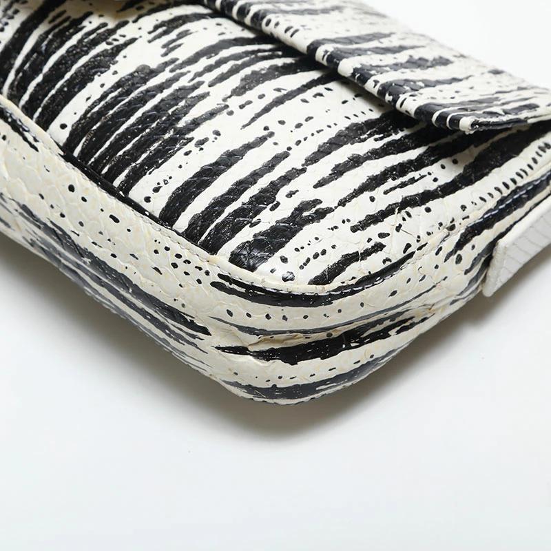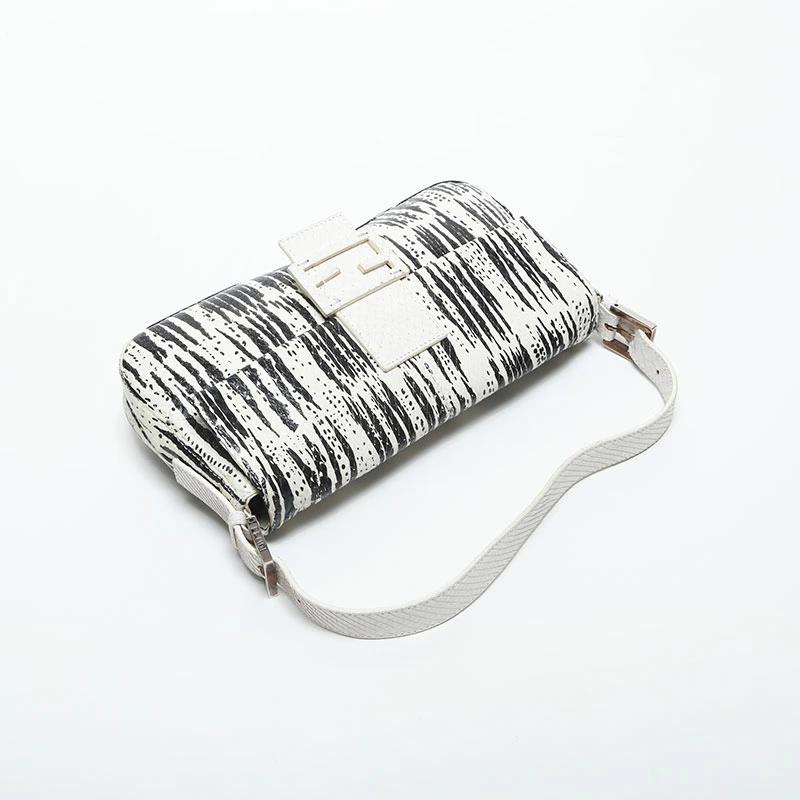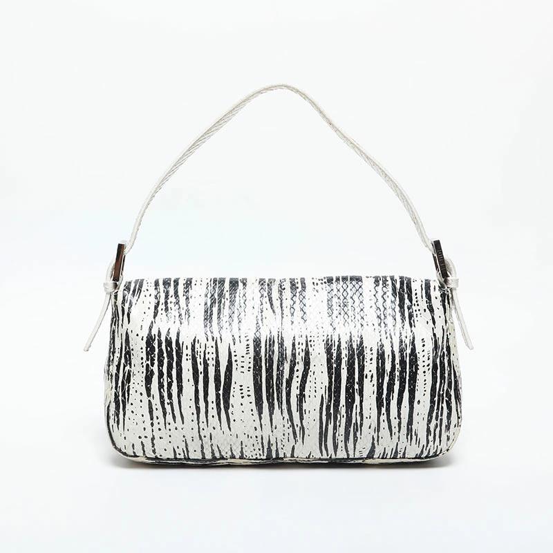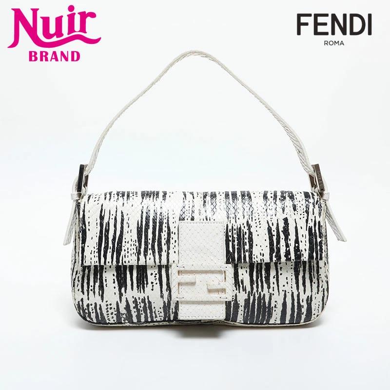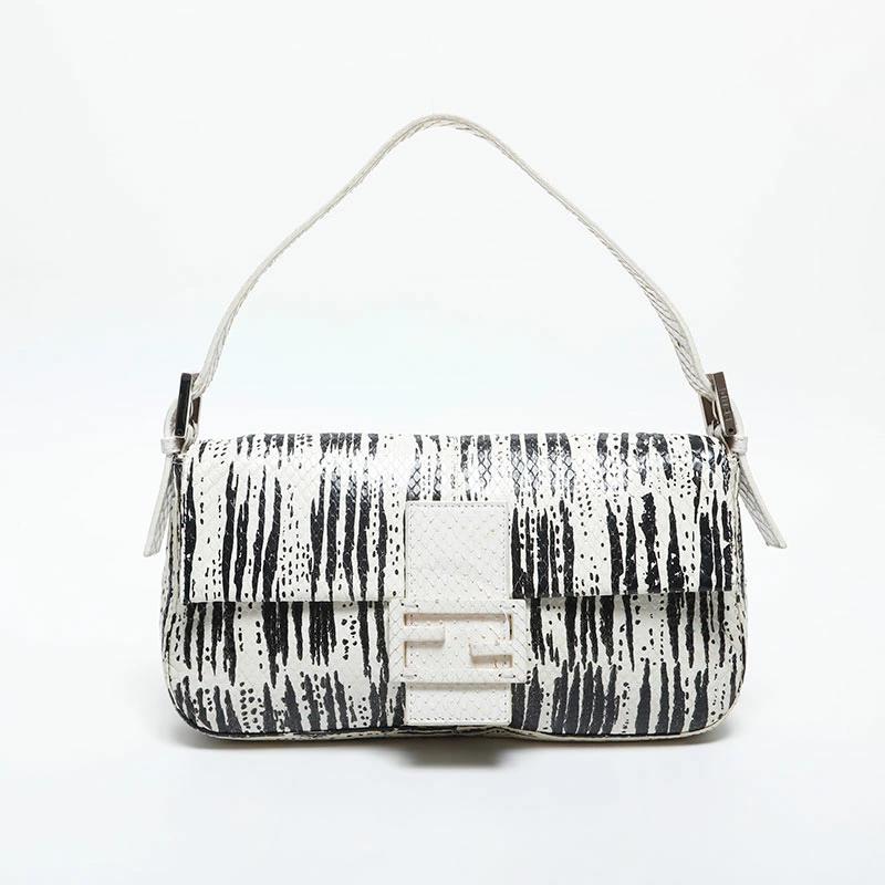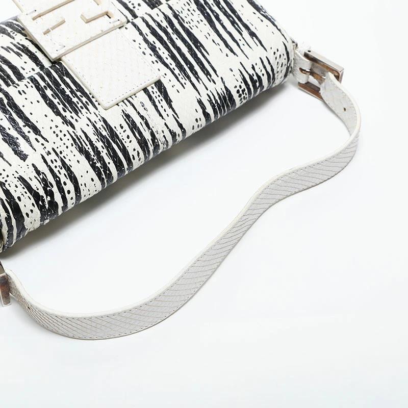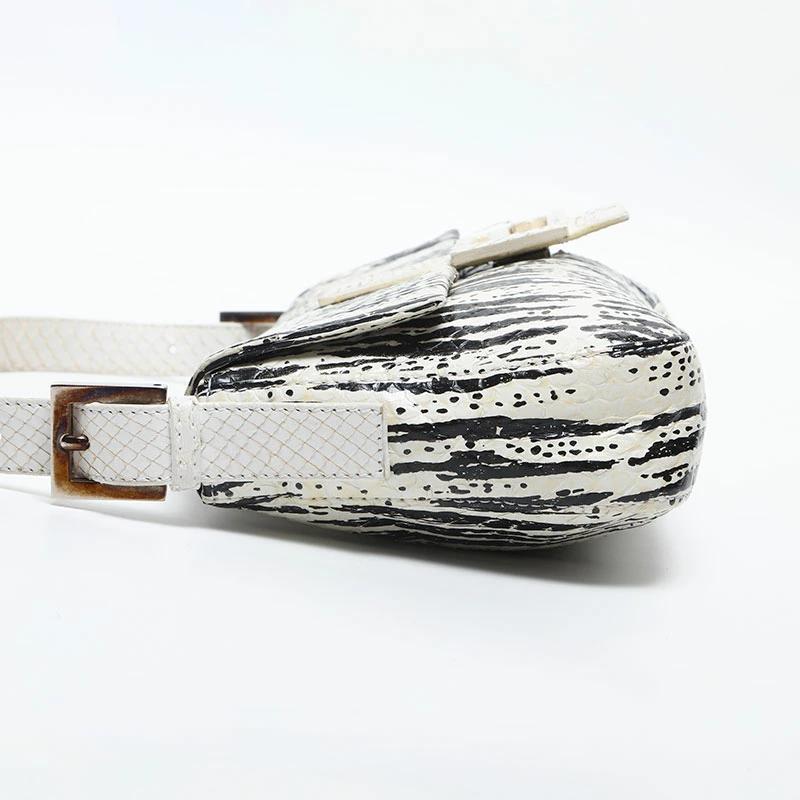 Pre-owned Fendi Python Mamma Bucket Shoulder Bag, Black and White, WS20011