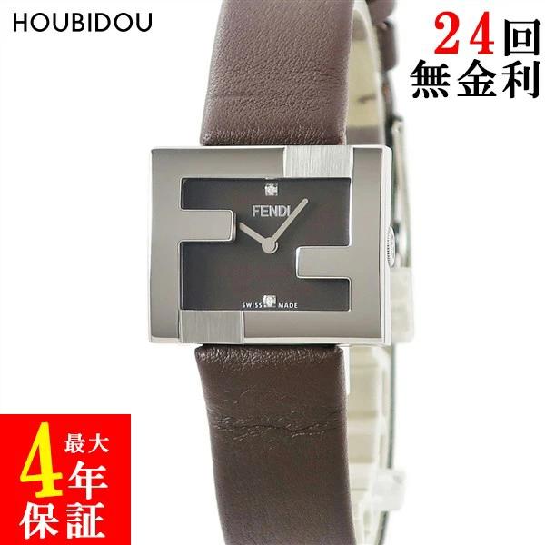 フェンディ FENDI マニア レクタンギュラー F100101701 未使用 ズッカフェイス 純正ダイヤ シルバー 茶 レディース 腕時計クオーツ ブラウン 【中古】【店頭受取不可】