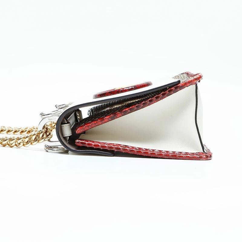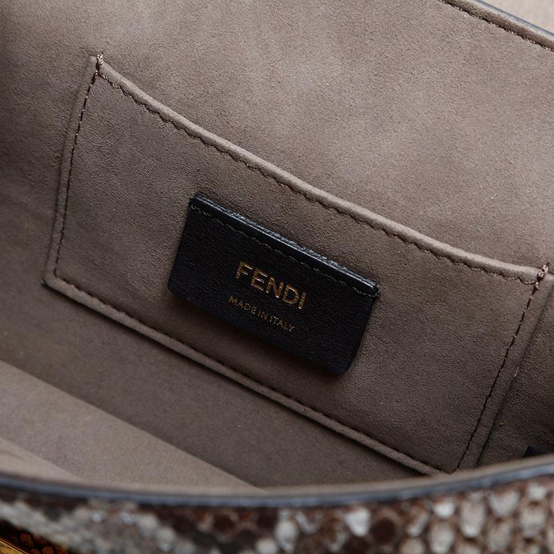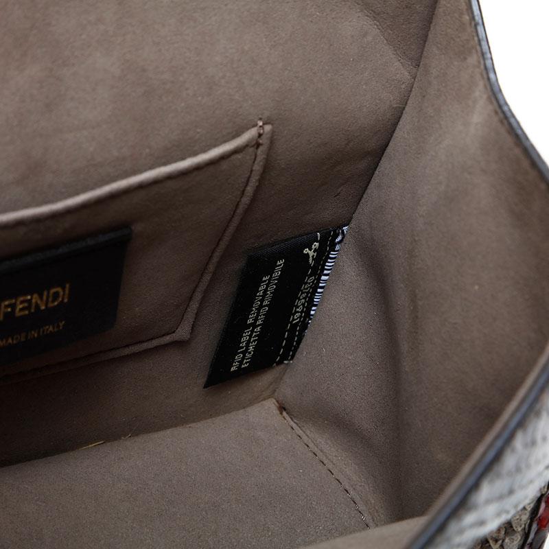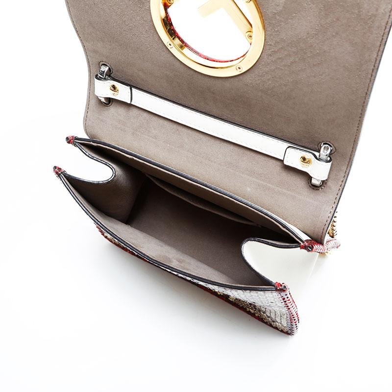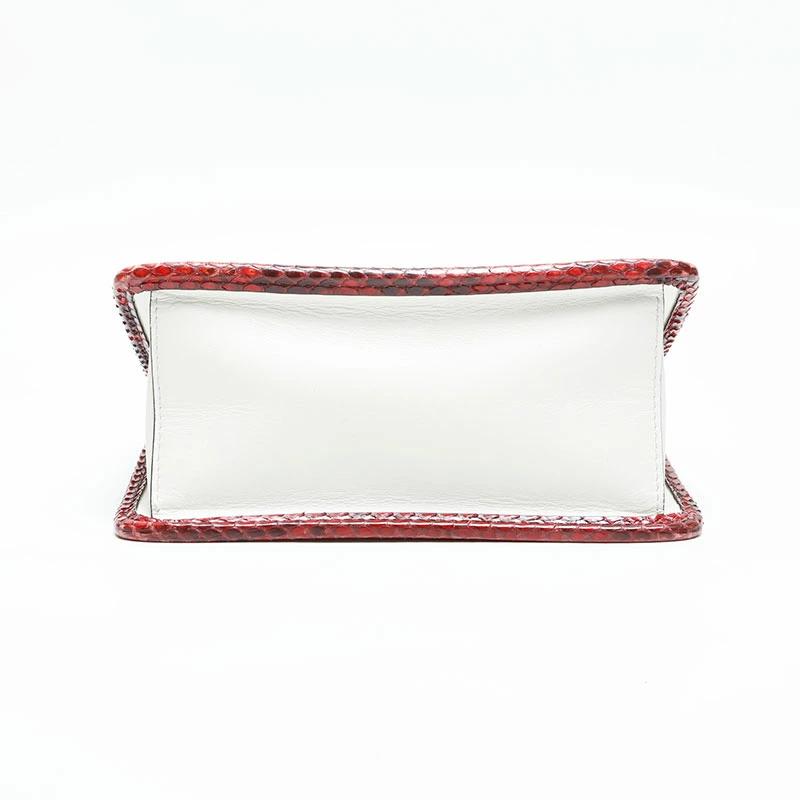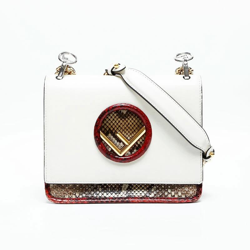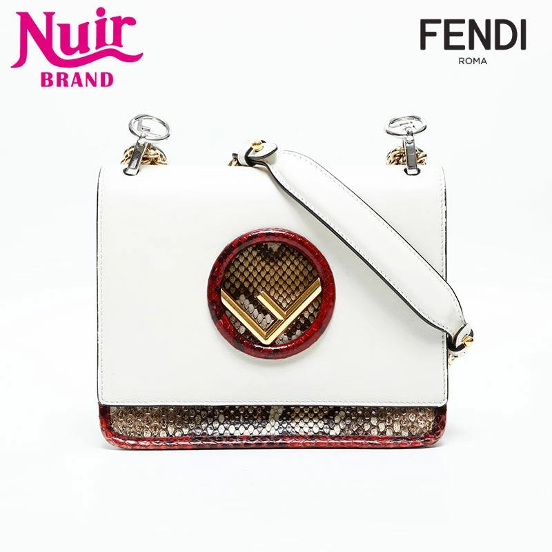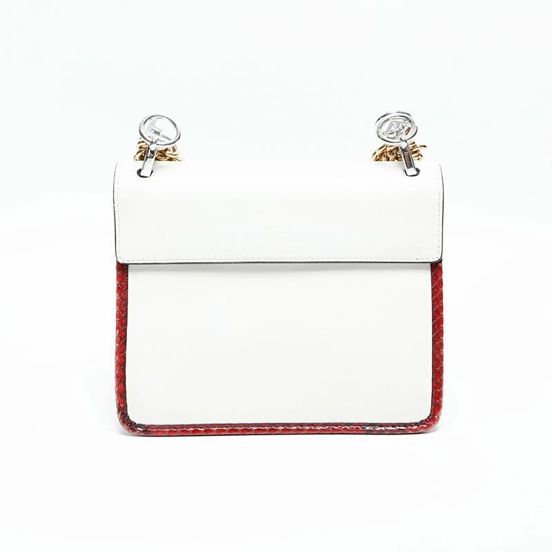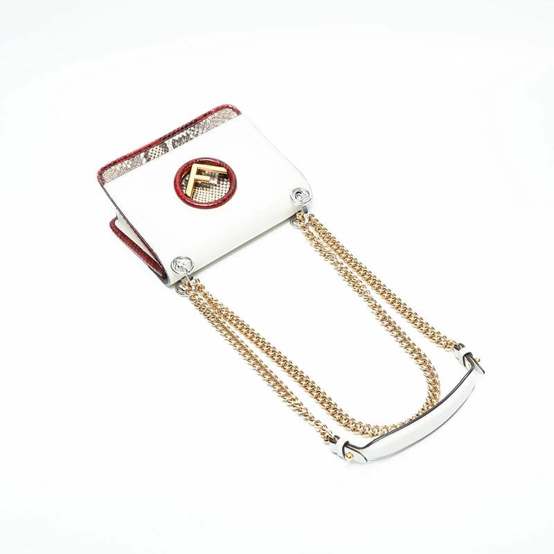 Pre-owned Fendi Mini Canaief Python Leather Chain Shoulder Bag, White, WS23149