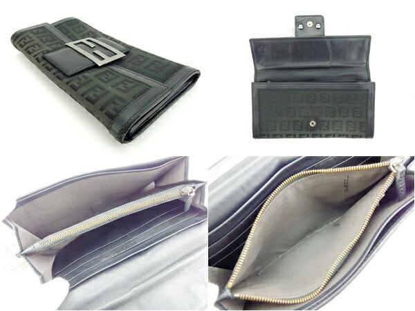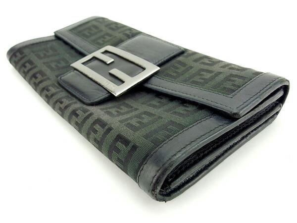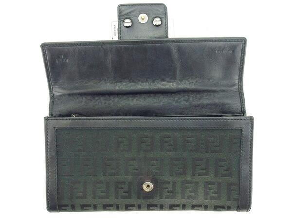 Pre-owned Fendi Zucchino long wallet in black and black silver for women
