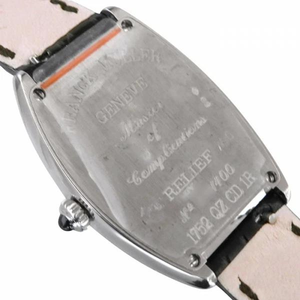 お問い合わせ商品IDW162310ブランドフランク・ミュラー商品名フランク・ミュラー FRANCK MULLER トノウカーベックス レリーフ 1752QZCD1R ブラック文字盤 中古 腕時計 レディース型番1752QZCD1R文字盤色ブラック文字盤種-素材ステンレスサイズケースサイズ: 35.0 x 25.0mmムーブメントクォーツ防水日常生活防水当店保証ご購入日より1年付属品純正ボックス 有り商品状態[ 中古 ] ※ 外装仕上げ済み大きな目立つ傷はございませんが、中古品につき全体的に多少の小傷がございます。※詳細はお問い合わせください。商品説明ケース径35×25mmのトノウカーベックス レリーフ「1752QZ」。美しい3次元曲線によって形成されるトノウ型のケースが印象的なモデルです。このモデルは、3サイズ展開されているレディースタイプにおいて一番大きなサイズに当たります。弧を描くように設計されたデザインで、女性の腕にも綺麗に収まるサイズ感です。「レリーフ」とは、ダイヤルにケース素材と同色の鏡面反射加工を施したインデックスを採用したモデルです。見る角度や光の入り方により、表情を変えるという特徴を持っています。更にはサークル状にダイヤモンドもセッティング。さり気なく高級感を演出しています。レディースからメンズに至るまで、同モデルで幅広いサイズ展開がされているのもフランク・ミュラーの大きな特徴で、自分の腕に合うモデルをお選びいただけます。ご注文・ご来店前にご確認くださいませご来店購入をご希望の場合は、ご来店前に在庫の確認をお願いいたします。当サイトの商品は、実店舗でも販売しておりますので、あらかじめ在庫のご確認をお願いいたします。売り切れの際はご注文をキャンセルさせていただきます事ご容赦くださいませ。流通事情などにより付属品の一部がご提供できない場合がございます。商品によってはマイナーチェンジなどにより、掲載画像と現物に差異がみられることがございます。ご使用のパソコン環境により、掲載画像と現物の色合いに若干差異がみられることがございます。予告なく価格が改定される場合がございます。返品について通信販売にてご購入いただきました商品は、品質・梱包に万全を期しておりますが、万が一ご到着時に破損・不具合がございましたら2日以内にご連絡をお願いいたします。未使用の場合に限りご返金させていただきます。なお、上記以外の理由やお客様都合、ご使用済みの商品のご返品はお受けいたしかねます。