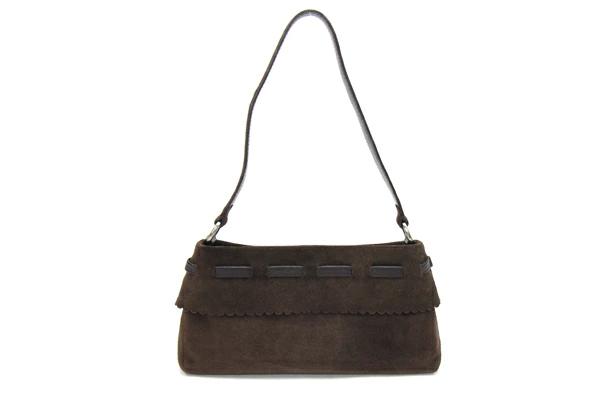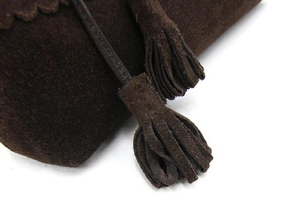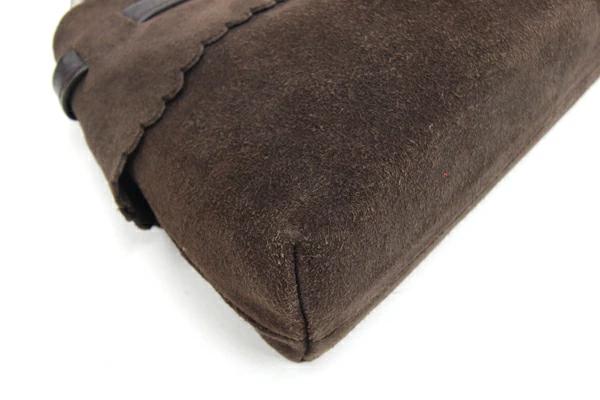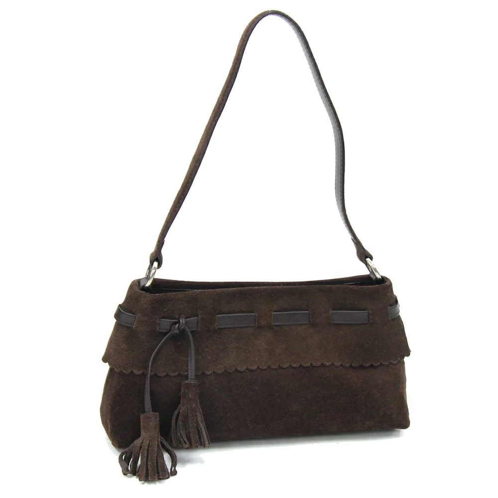 Pre-owned Furla semi-shoulder bag in dark brown suede and leather with tassels. Women's.