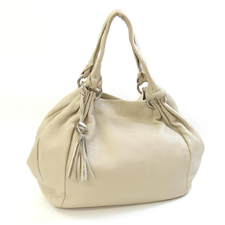 フルラトートバッグ77524イエローベージュ系レザー中古肩掛けショルダーロゴフリンジレディースFURLA