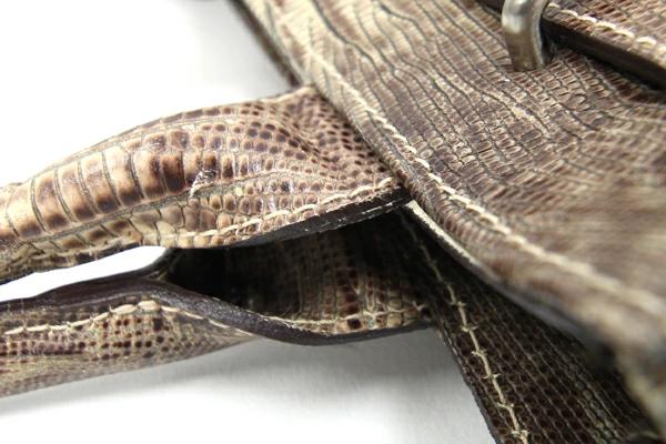 | 状態 | 外側:サイドラインに型崩れあり。フチにスレあり。ハンドル付け根にヨレあり、倒れクセもあり。 内側:僅かに薄汚れあり。 金具:小キズ、クスミあり。 |