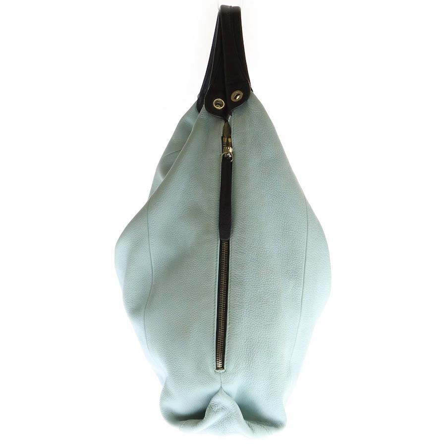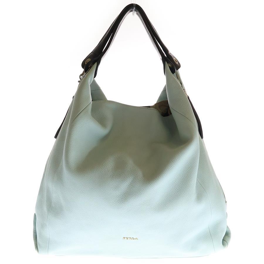 [モデル]ハートチャーム付き レザー ハンド トートバッグ ライトブルー/ブラウン レディース