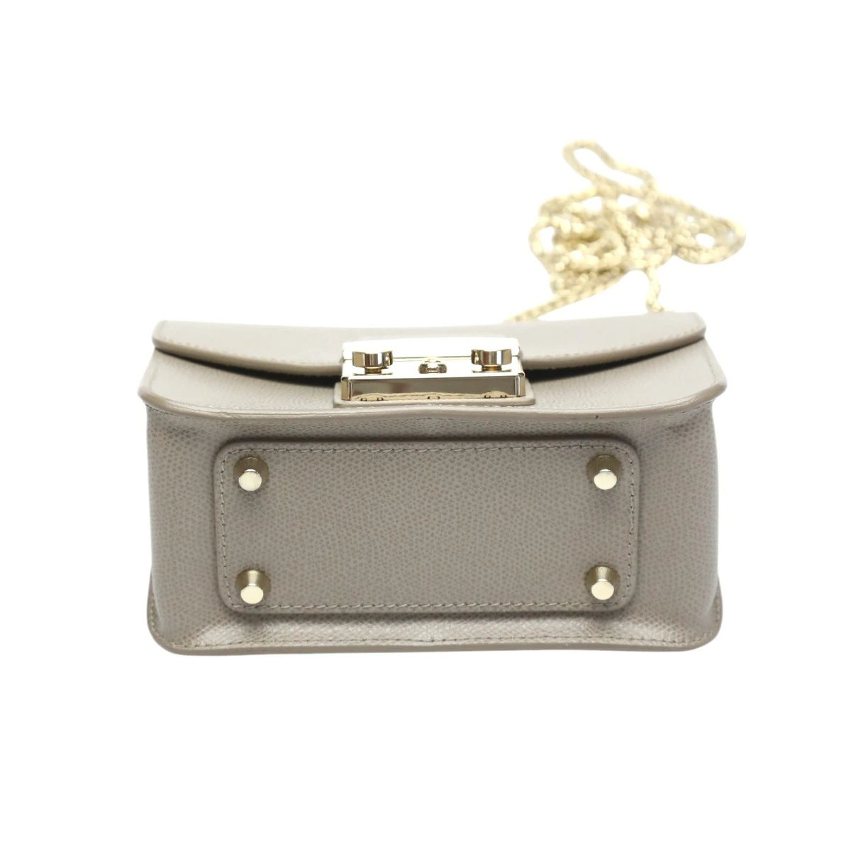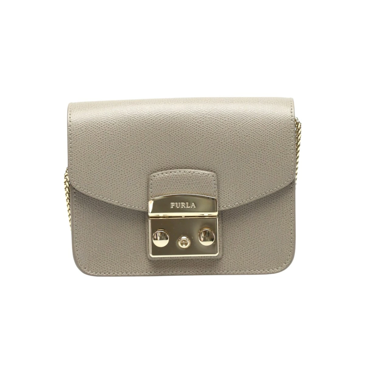 Pre-owned Furla Metropolis Leather Shoulder Bag with Gold Hardware and Chain, Greige, G6400/S2.
