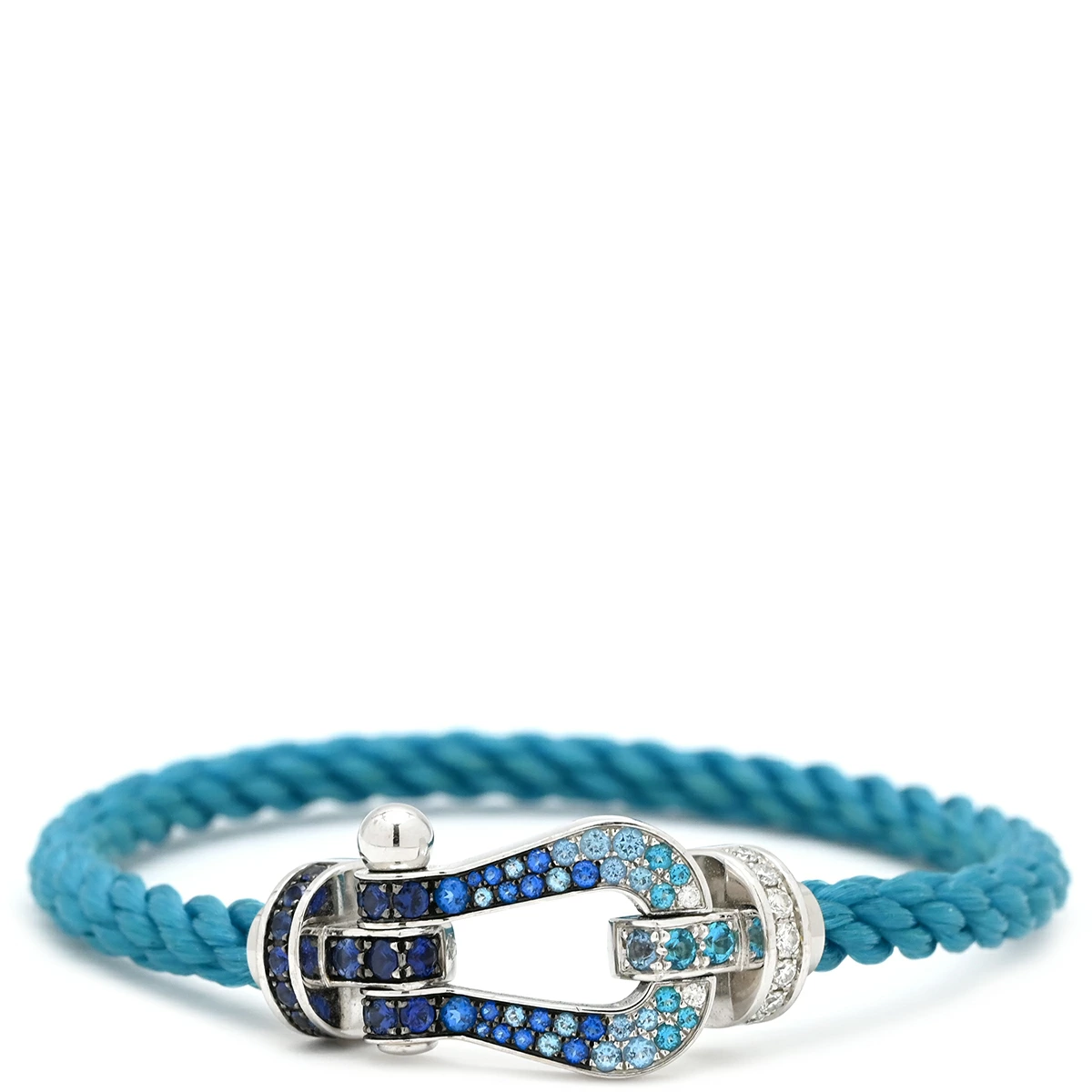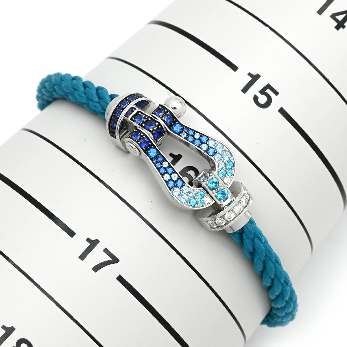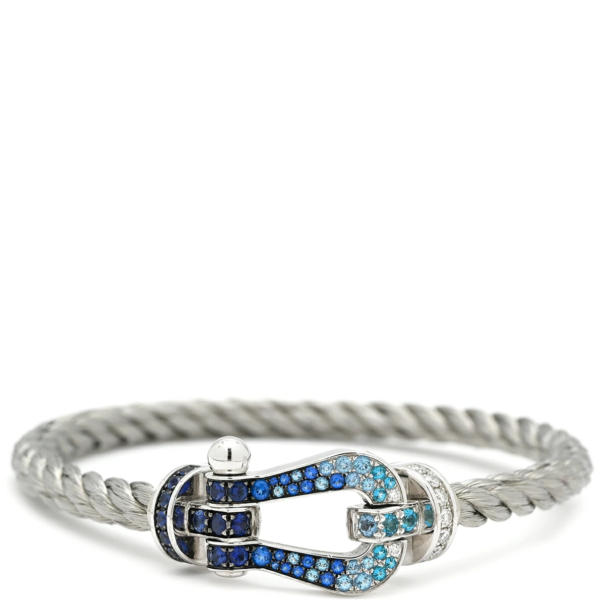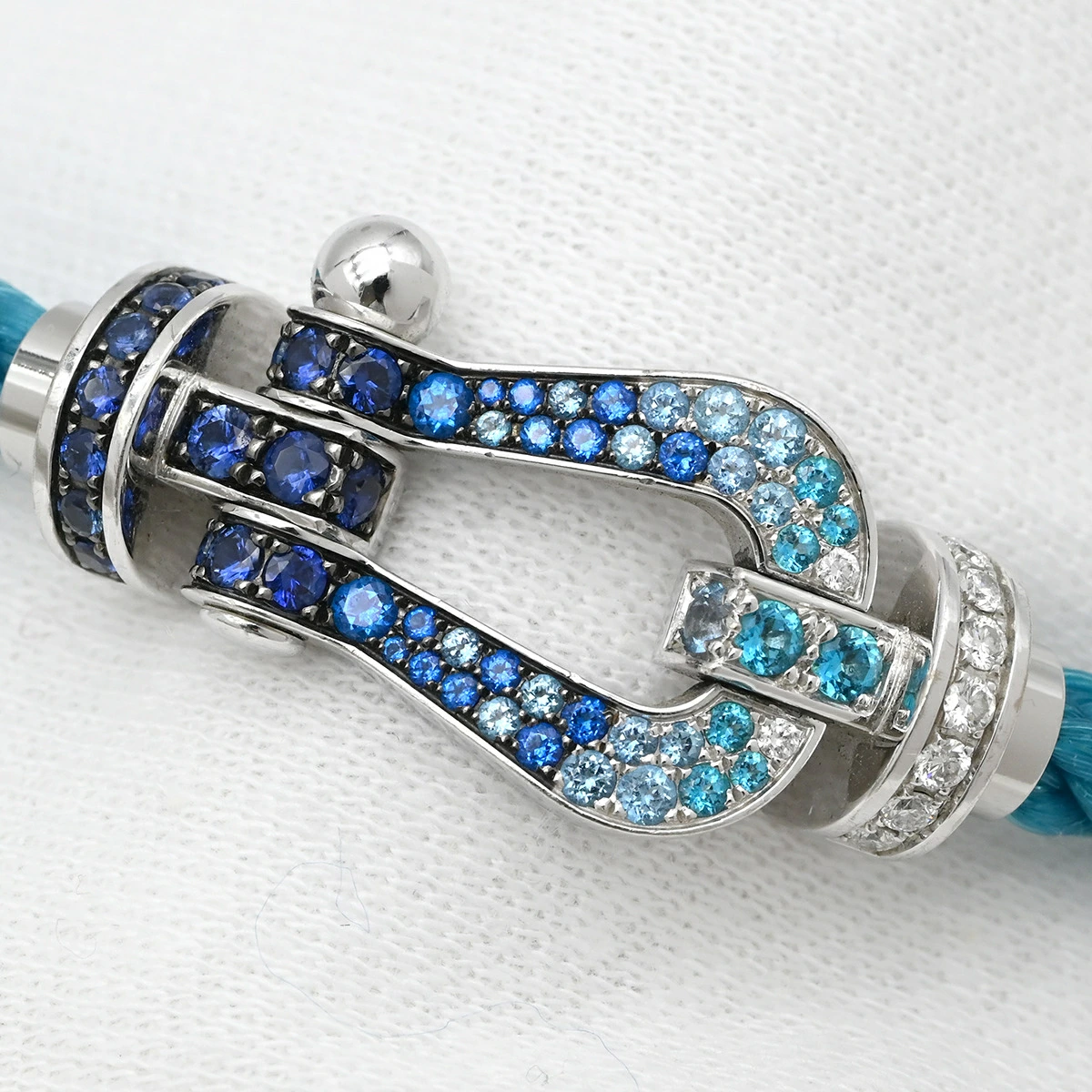 ▲クリックで拡大されますフレッド FRED ブレスレット フォース10 ラージモデル K18WG ダイヤモンド サファイア(ダークブルー/ブルー/ライトブルー) トパーズ アクアマリン ステンレスケーブル リヴィエラブルー×ホワイトゴールド ダイヤ サファイア トパーズ アクアマリン Au750 18K 18金 ステンレスケーブル - レディース 【中古】