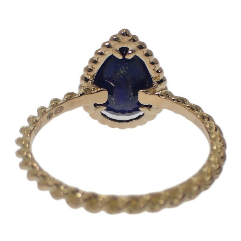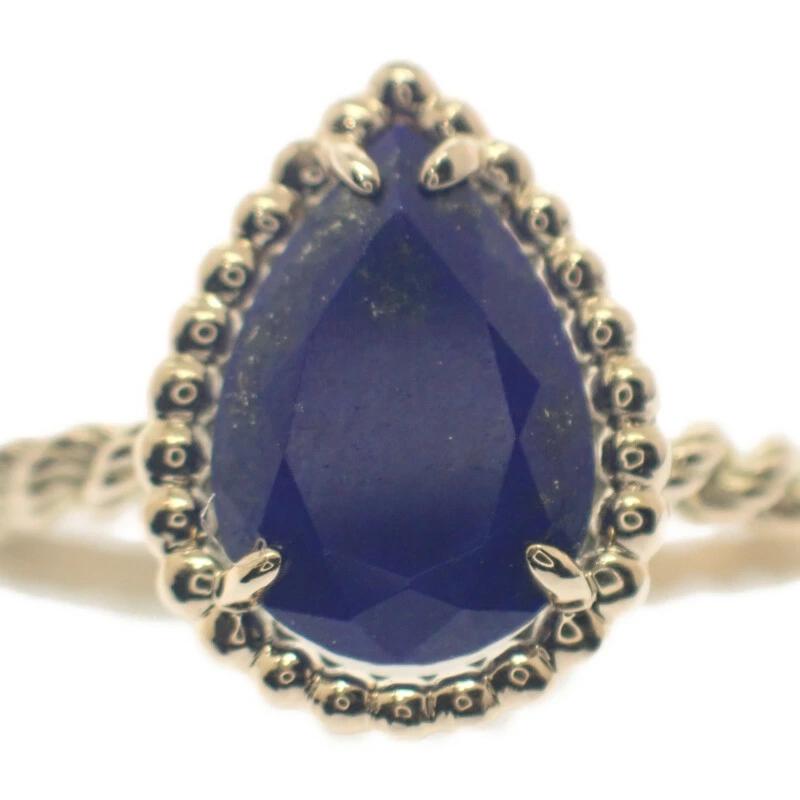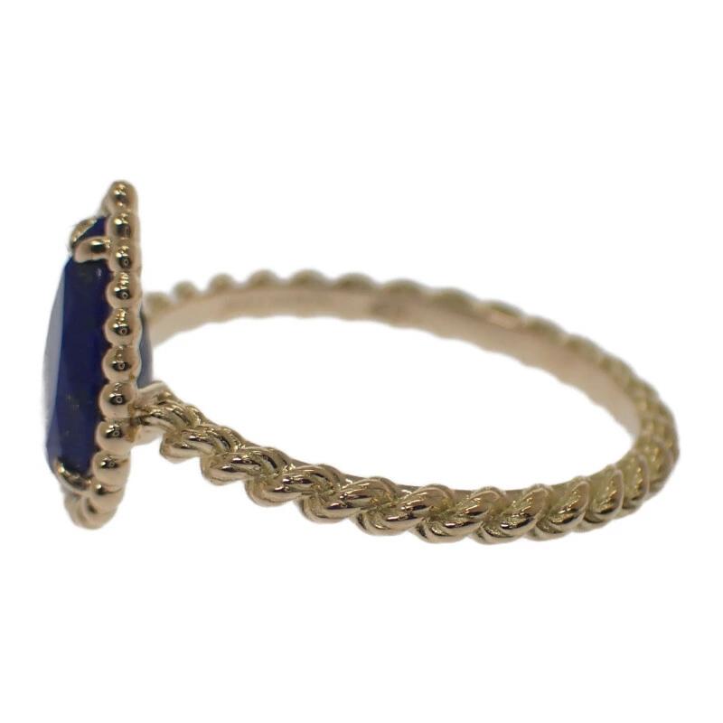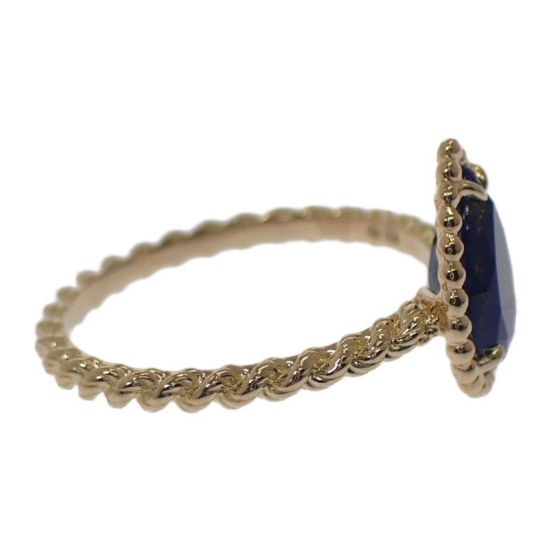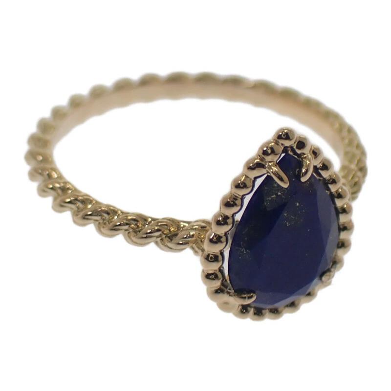 中央のドロップモチーフには、深いブルーと散りばめられたゴールドが特長のラピスラズリがセッティングされており、神秘的な輝きが指元を彩ってくれます。