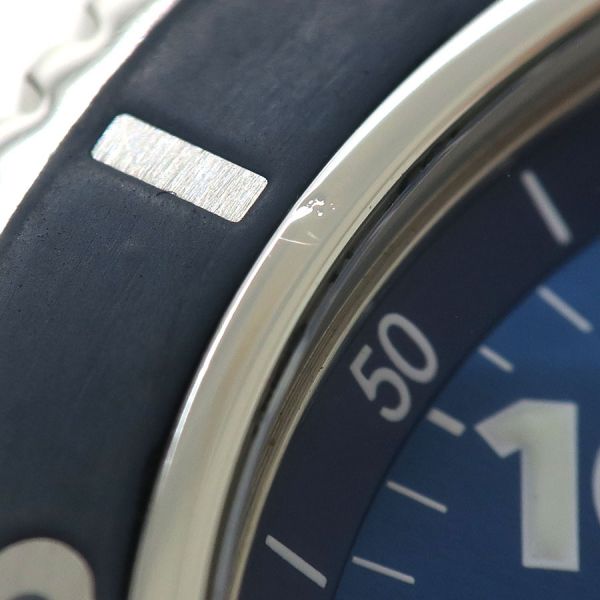究極のダイバーズウォッチとして名高い“スーパーオーシャン”が入荷しました。ベゼルにはラバーを使用しており、ベゼル、ダイアルをブルーで統一したスタイリッシュなモデルになります。アラビアインデックス、3時位置にデイト表示があり実用性も高いものとなっております。当社提携の時計修理工房にて外装の新品仕上げと機械点検を行っております。ベゼルラバーに擦れ、ベゼル内側の10時位置に傷がございます。ブライトリングの人気モデル スーパーオーシャンをお見逃し無く。
