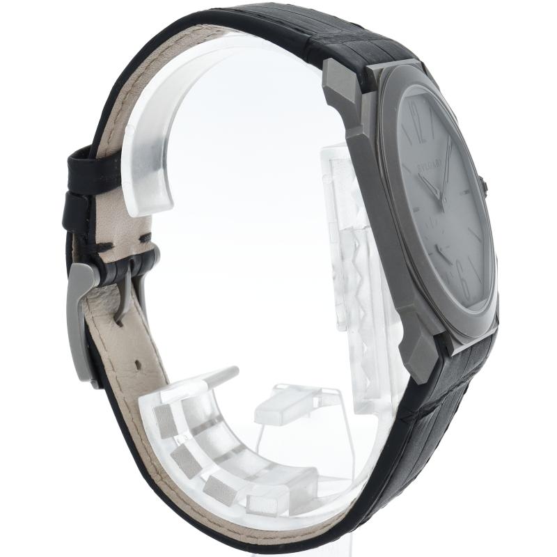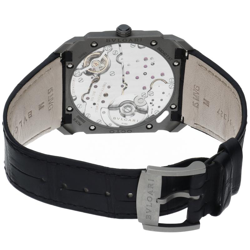 商品説明:21世紀の真の象徴とも言えるオクト フィニッシモ オートマティック ウォッチ。310年前後に建設されたマクセンティウスのバシリカからインスピレーションを引き出した独特の八角形のデザインを、並外れた機構と融合しています。2.23mm厚という世界最薄のCal.BVL138を搭載。