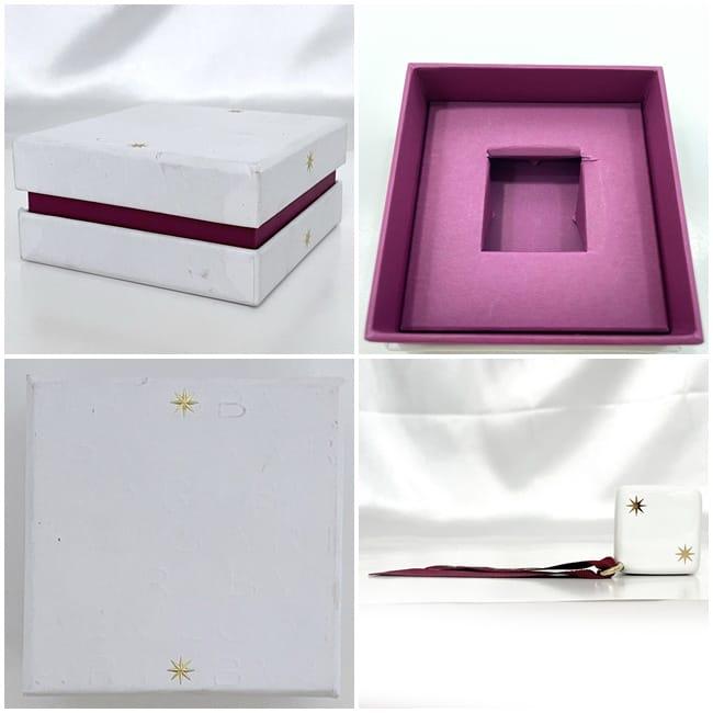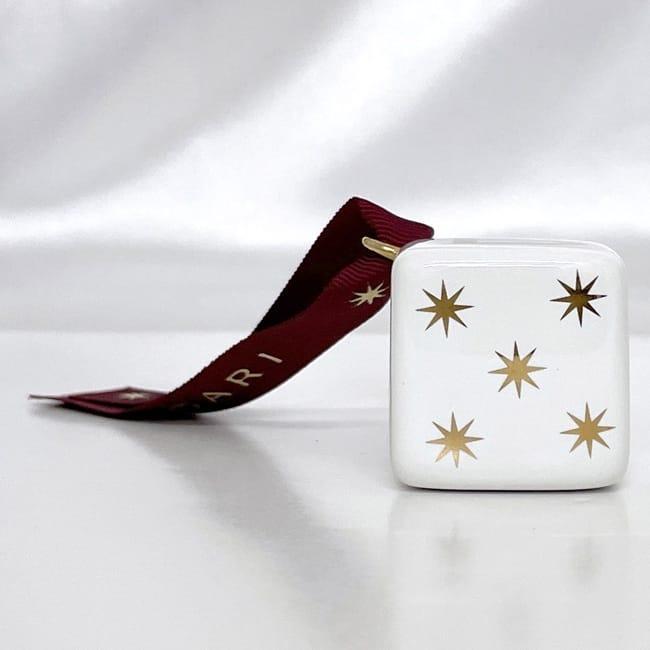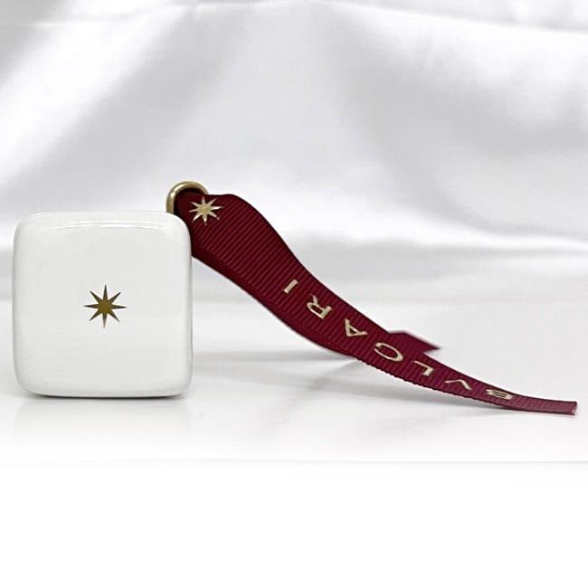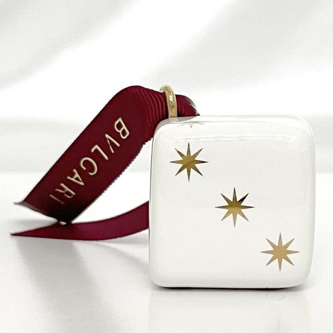 ブルガリ オーナメント ec-23621 ホワイト ゴールド 美品 陶器 中古 BVLGARI 飾り キューブ サイコロ 星 リボン 定番 人気 小物 雑貨 白色 白 クリスマス ツリー コレクション インテリア シンプル お洒落 エレガント 箱付き 箱 高級感 ブランド 本物 鑑定済み