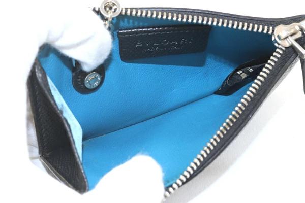 Bvlgari Coin Case, Bvlgari Bvlgari 282604, Black Leather, Pre-owned, Mini Wallet, Compact Wallet with Key Ring, Men's, BVLGARI